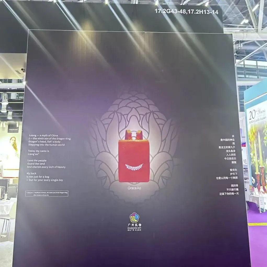本届广交会上,「靓鳌」时尚双肩包凭借深厚文化底蕴、大师设计与实用品质,吸引海内外客商驻足关注、咨询洽谈,成为文化交流与商贸合作的热门话题。
