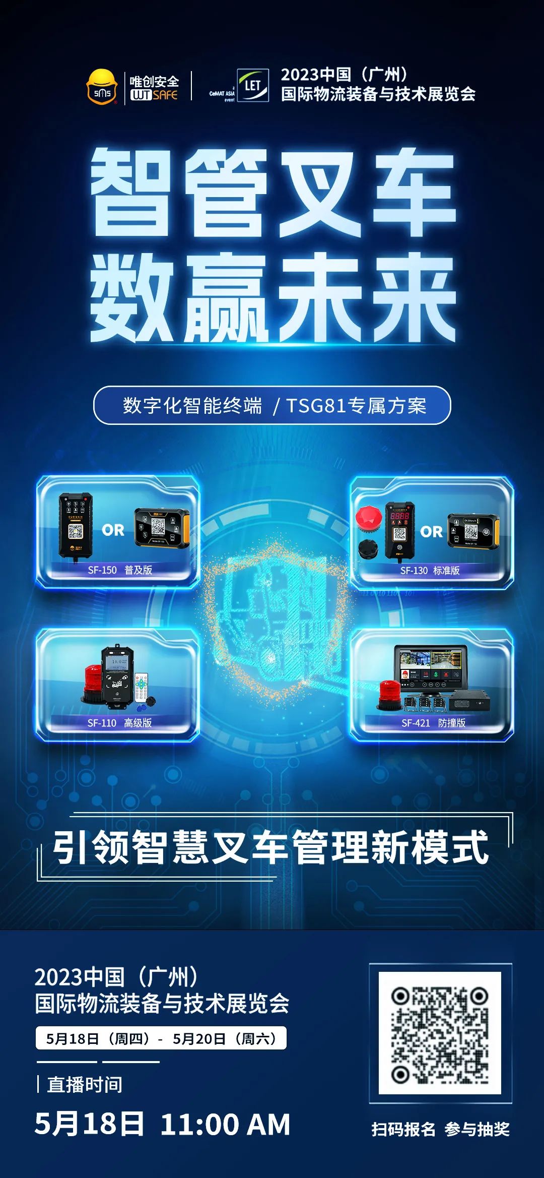 5月18日-20日,每天上午11点唯创安全直播间都将开播,来您云逛展,看趋势,找机会!