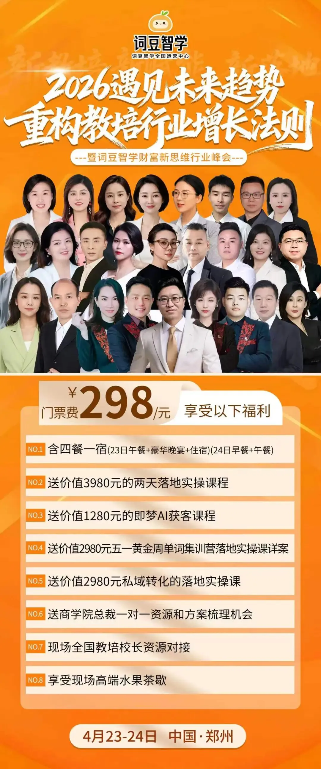 揭秘“区域服务中心盈利模型”“千城万店落地执行方案”“教育OMO新模式案例”,现场对接全国校长资源,还能抢298元门票(含四餐一宿+价值超2万元课程礼包)!