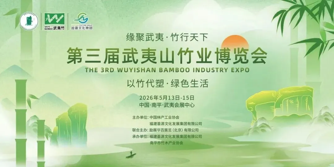 在人类文明的谱系中,木材与竹材的使用史几乎与文明史同步。从“构木为巢”到“秦砖汉瓦”,再到精美的明清家具,木竹材料及制品的应用已从建筑、家居、日常生活等拓展至国防、交通、能源等方方面面,始终是支撑社会发展、塑造文化意象的基础材料。中国作为全球最大的木竹材料及制品生产、消费和贸易国,木竹产业是林业的支柱,也是关乎千万人就业的民生产业。在“双碳”战略背景下,木竹产业的角色已远超传统的经济产业范畴,被赋予了全新的生态战略属性。当前,木竹产业正站在一个历史性的交汇点上,它不仅是连接生态文明与物质文明的桥梁,更是中国在落实“双碳”目标、推动高质量发展进程中不可或缺的“绿色基石”与先锋力量。由中国林产工业协会和福建荟源文化发展集团有限公司携手主办的第三届中国(武夷山)竹业博览会将于5月13-15日在中国·南平武夷会展中心举办。本届展会以“以竹代塑・绿色生活”为核心主题,聚焦产业赋能与国际合作,通过专业化、国际化、创新化的展会平台,助力中国竹业企业链接全球资源、拓展发展空间。携手全行业凝心聚力,共同打造兼具行业影响力与国际竞争力的竹产业顶级盛会。本届竹博会展览规模超30000平方米,将组织参展企业500家以上,重点吸引4000名以上优质采购商到会,全面呈现竹产业在资源培育、科技创新、精深加工、品牌建设等领域的亮眼成绩。涵盖竹家具、竹建材、竹工艺品、竹食品等全品类产品,同时举办竹建筑设计应用、以竹代塑、跨境电商等专项活动,全方位满足参展商、采购商的展示、交易、交流需求。5月13-15日,第三届武夷山竹博会,诚邀海内外竹产业从业者、采购商、投资者齐聚武夷山下,共赏竹韵风华,共探合作商机,共绘竹产业高质量发展新蓝图!