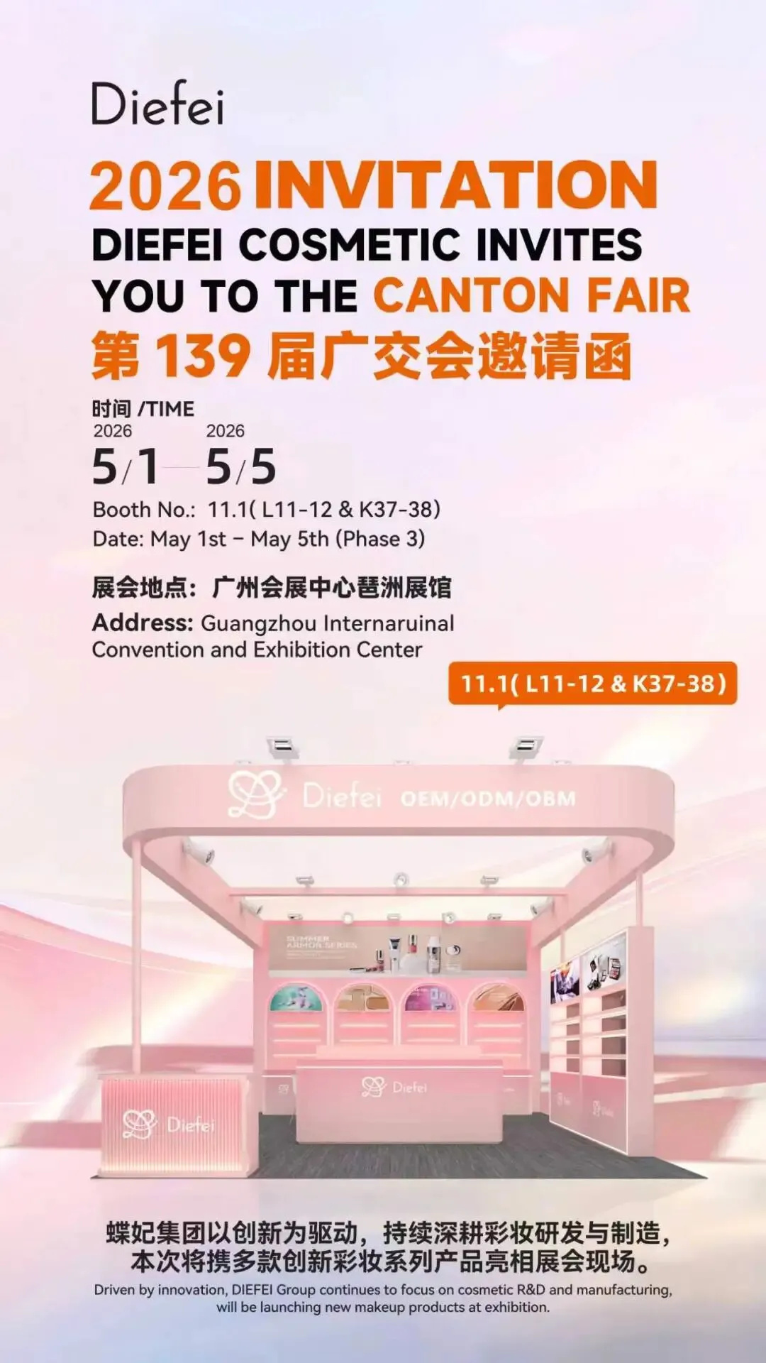 The 139th Canton Fair is about to open!Driven by innovation, DIEFEI Group continues to focus on cosmetic R&D and manufacturing,bringing a range of innovative makeup products to the exhibition.