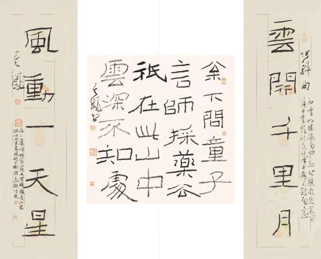 《张斛联》《贾岛·寻隐者不遇》 60×18.5cm×2 34.5×34cm