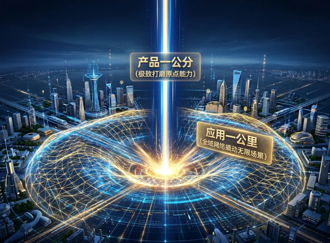 我们要回到企业有优势的原点能力上进行再定位,沿着技术发展的曲线,把能力进行迁移,去探索多元的应用场景,然后借助于全域矩阵的覆盖,我们就能够在同一个能力的基础上,增加不同的用户类型,撬动不同场景的需求,带来更多的销售机会,让自己做到产品一公分,应用一公里。