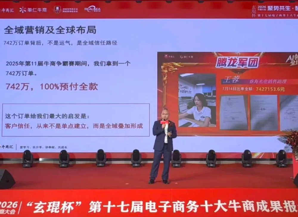 特别是在2025年的牛商争霸赛期间,睿海光电拿到了一个742万的央企订单,对方从短视频上看到他们的产品,随后在官网、1688、AI搜索、行业论坛各个渠道交叉验证,再到线下进行实地考察,确定了专业性跟真实性后,对方主动要求他们参加竞标。