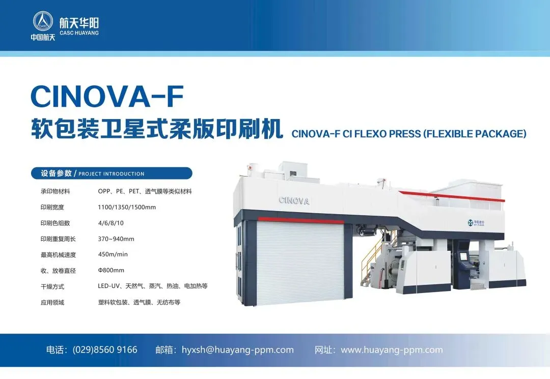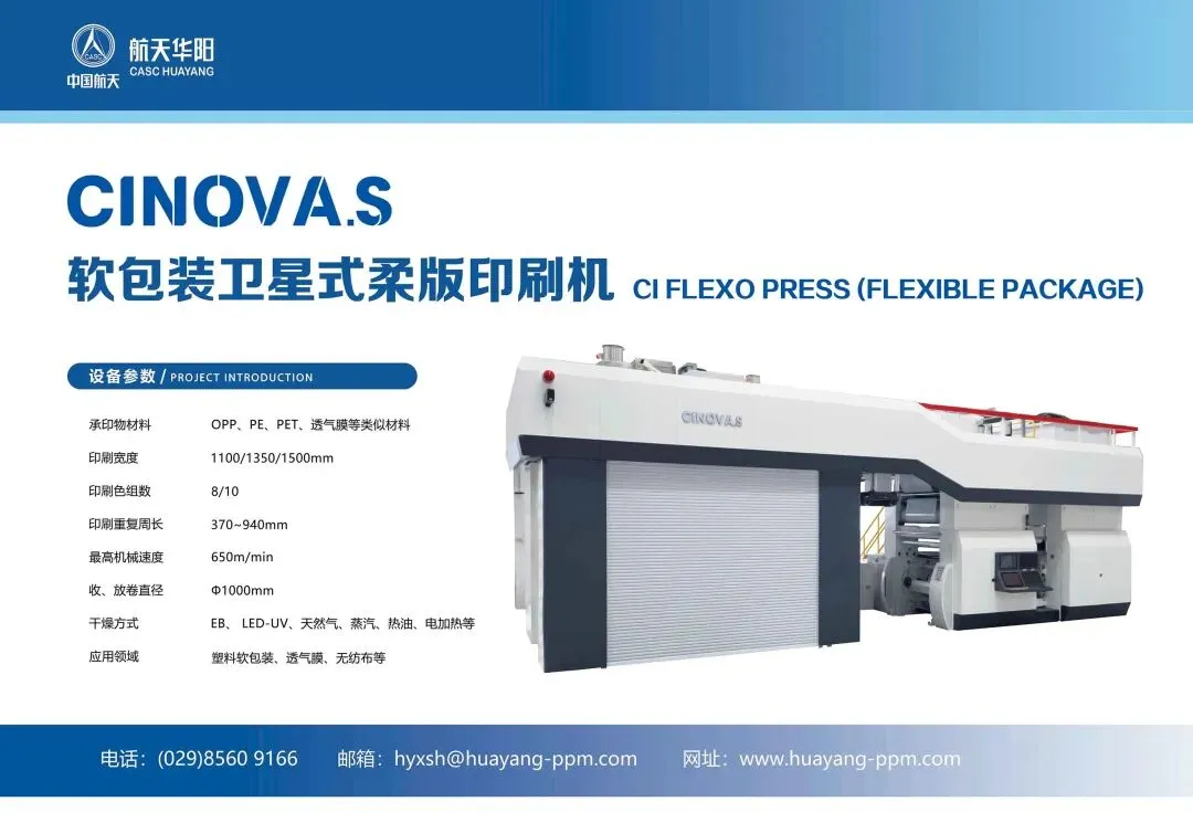 高端机型CINOVA印刷速度600m/min,该机型针对薄膜和纸张配置不同的收放卷及张力控制单元,在关键部件、干燥效率及智能化方面实现最佳配置组合,代表了航天华阳在卫星式柔印装备的最高水平。