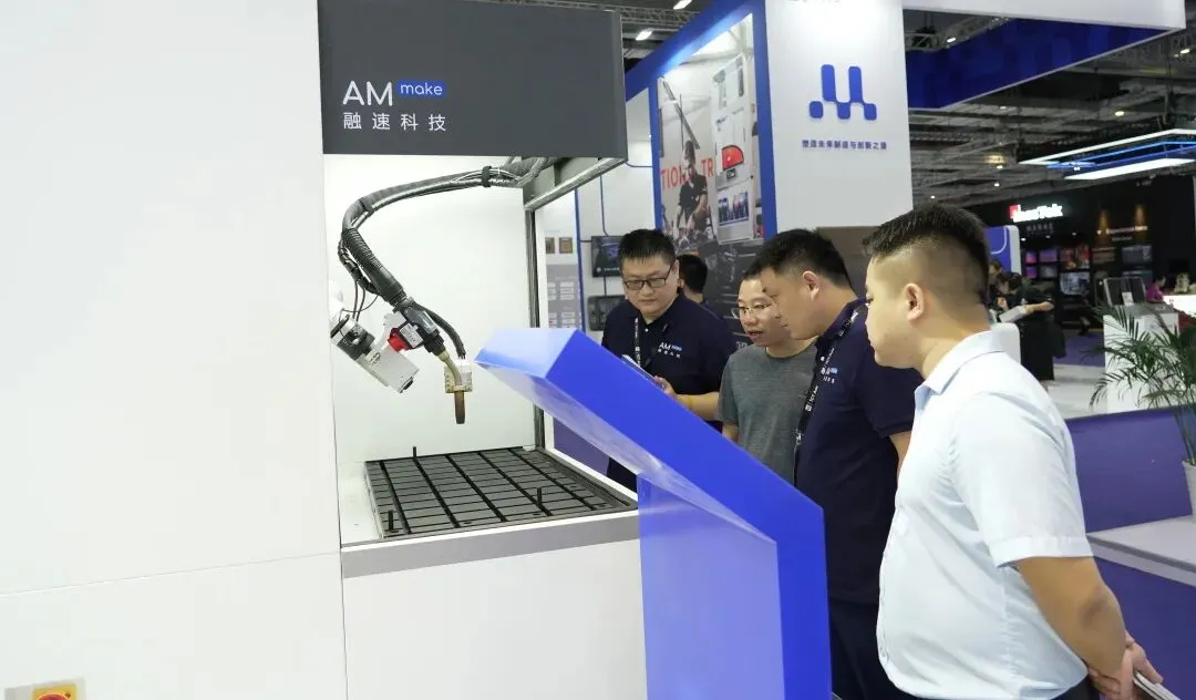 基于对科研机构、高校用户和行业的深刻理解,融速科技在展会现场首次推出专门针对科研领域的电弧增材平台AMmake T1,惊艳了在场的不少观展者。这些观展者纷纷与我们的工作人员就机器、打印应用等问题进行了深入交流。
