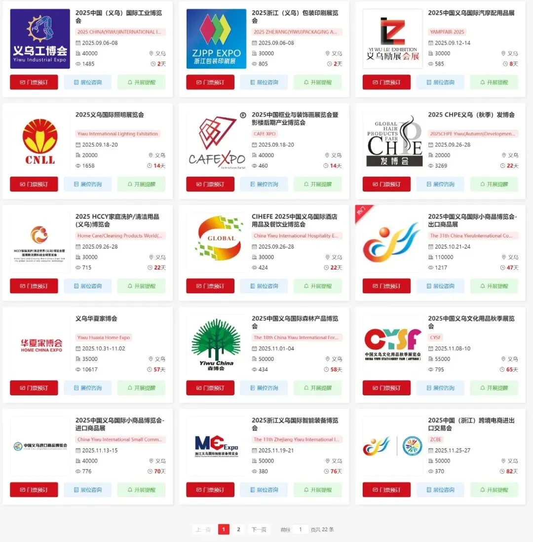 5月义乌将举办多场重要的展会活动,涵盖了饰品、服装、太阳能光伏、文化、玩具、户外、礼品、百货、宠物、文具、美妆、跨境电商、物流、厨房卫浴、自行车、酒店用品、摩配、照明、贸易、跨境电商展等多个领域。小编为大家整理了5月乌展会排期表,希望能帮助你规划行程。末文获取义乌展会门票预约入口~(大多展会限时免费预约)