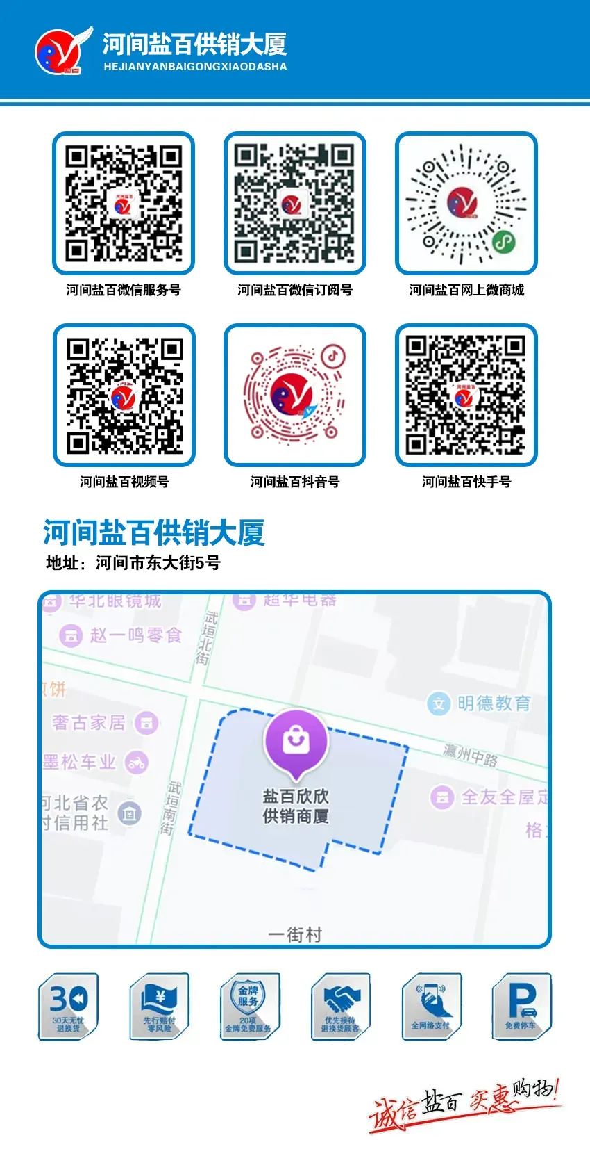 搜索“河间盐百供销大厦”或长按下方二维码关注