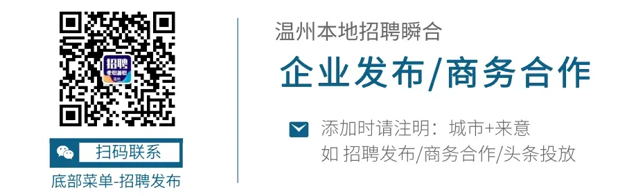应聘请注明职位+来源微信公众号【温州本地招聘瞬合】,直达推荐