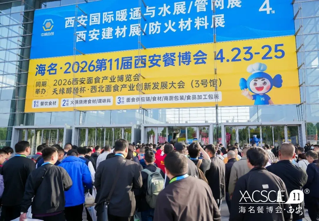 山河聚势开新局,餐启长安赴华章。4月23日海名·2026第11届西安餐饮供应链博览会(简称:海名·2026第11届西安餐博会)在西安国际会展中心(浐灞)盛大开幕。本届博览会由四大主题展、七场论坛活动、三大权威赛事组成,构建“会展 + 产业” 综合服务平台,现场汇聚来自全国1500 余家源头供应链企业及本地优秀经销商,超 20000 款新品集中首发。开展首日接待了来自陕西、甘肃、宁夏、青海、新疆、山西、河南、四川、内蒙古等地近2万名专业观众。