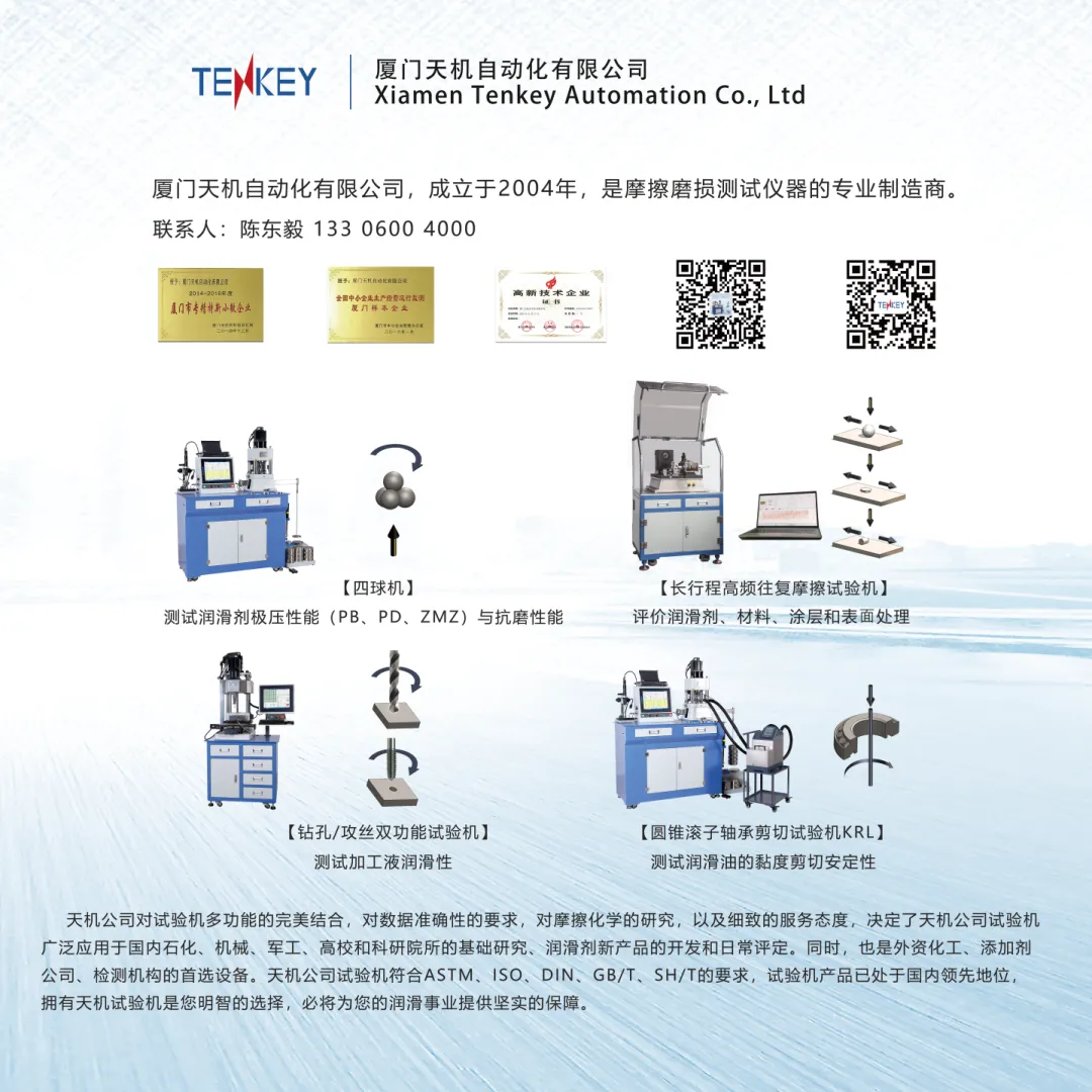 厦门天机自动化有限公司,成立于2004年,是一家以生产四球机为主的摩擦磨损测试仪器的专业制造商。公司经过多年的努力,研发出成熟产品如下: