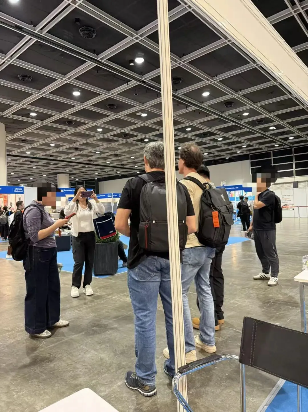 我们摊位的位置不算最好,但也不算差,靠近主通道。下午两点多,一位外国客户从通道那头走过来,背着双肩包,手里拿着一沓资料,一看就是在认真逛展的人。