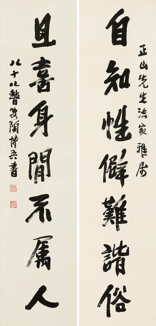 自知且喜七言联 137cmX33cmX2 1988年