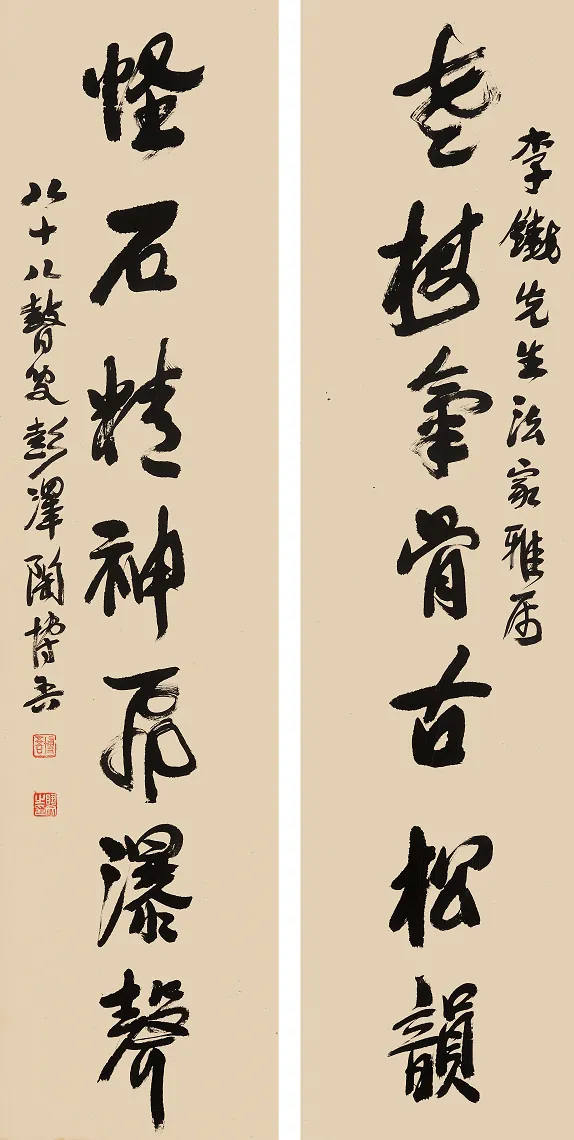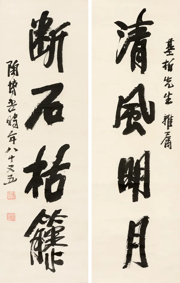 清风断石四言联 98.5cmX31cmX2 1985年