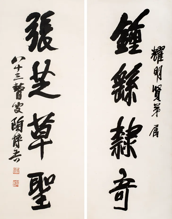 钟繇张芝四言联 99cmX39cmX2 1983年