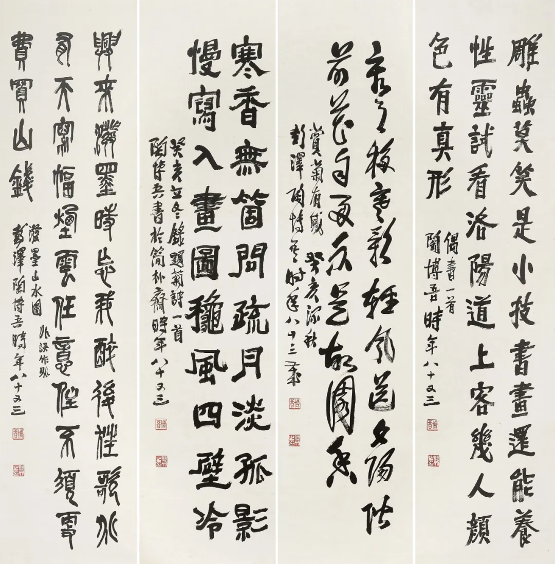四体书四条屏 138cmX34.5cmX4 1983年