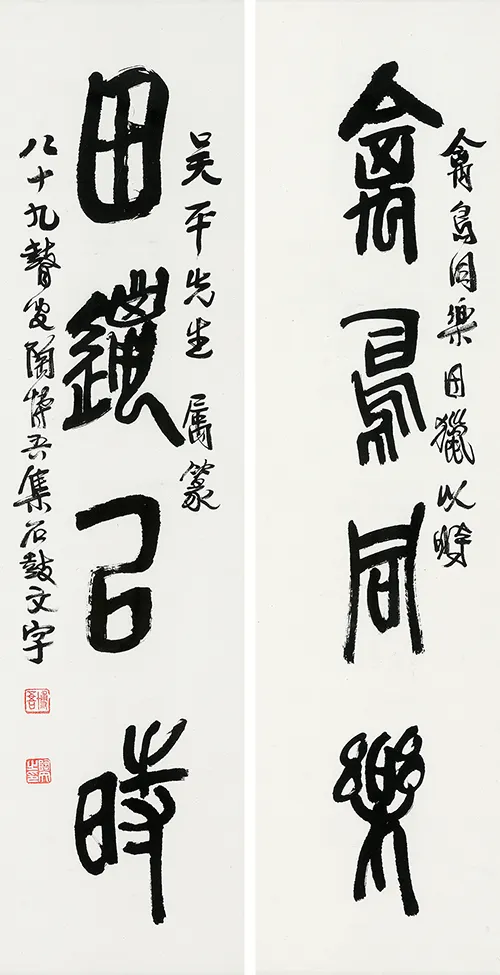 禽鸟田猎四言联 110cmX27cmX2 1989年