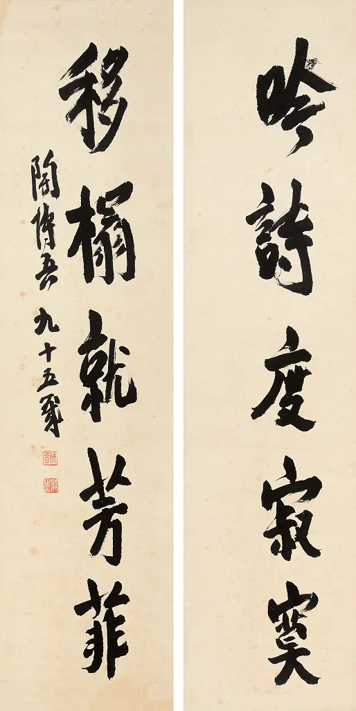 吟诗移榻五言联 134cmX33cmX2 1995年