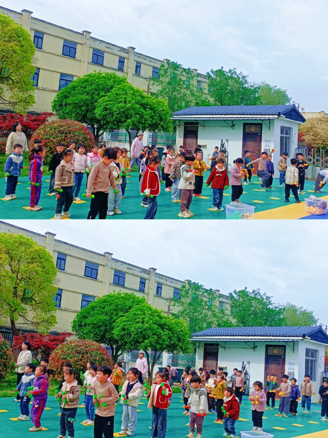 为遵循幼儿生长发育规律,满足不同年龄段孩子的体能发展需求,小涧镇小涧幼儿园结合园所实际打造了分龄特色早操活动,让每日户外早锻炼成为孩子们开启美好一天的活力起点。
