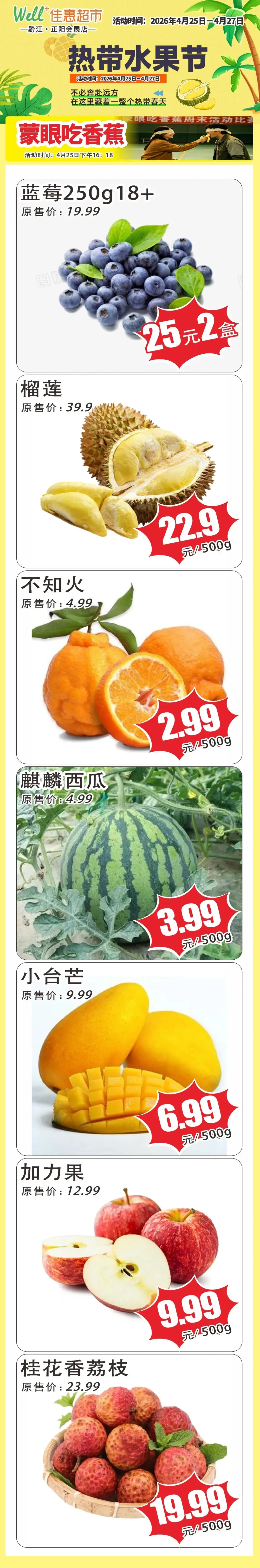 【佳惠超市正阳会展中心店 】4月25日-4月27日,开启热带水果节,超多鲜果,齐聚一堂,快来把鲜甜带回家