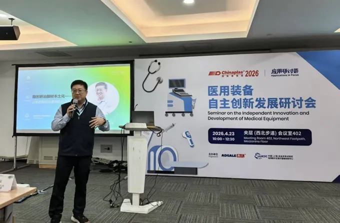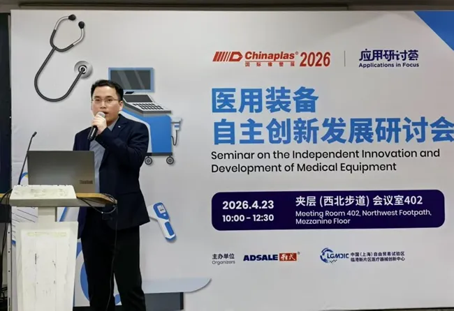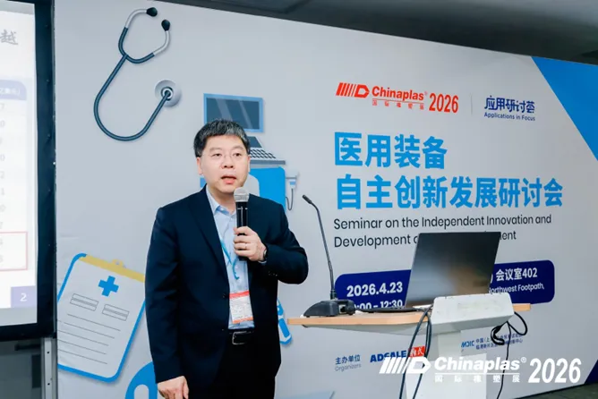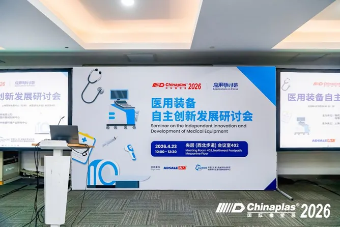 2026年4月23日上午9:40-12:30在“第三十八届中国国际塑料橡胶工业展览会”期间举办的“医用装备自主创新发展研讨会”在上海•国家会展中心(虹桥)顺利举行,本次研讨会由雅式展览服务有限公司与中国(上海)自由贸易试验区临港新片区医疗器械创新中心联合主办,临港新片区医疗器械创新中心作为行业专业服务平台,与来自产学研用各界的专家、企业代表共同探讨医用装备国产化创新路径与产业化实践。