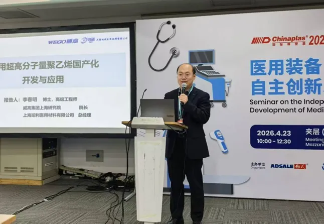 威高集团上海研究院院长李春明分享了《医用超高分子量聚乙烯国产化开发及应用》的实践成果,展示了国产高端医用材料的突破性进展。