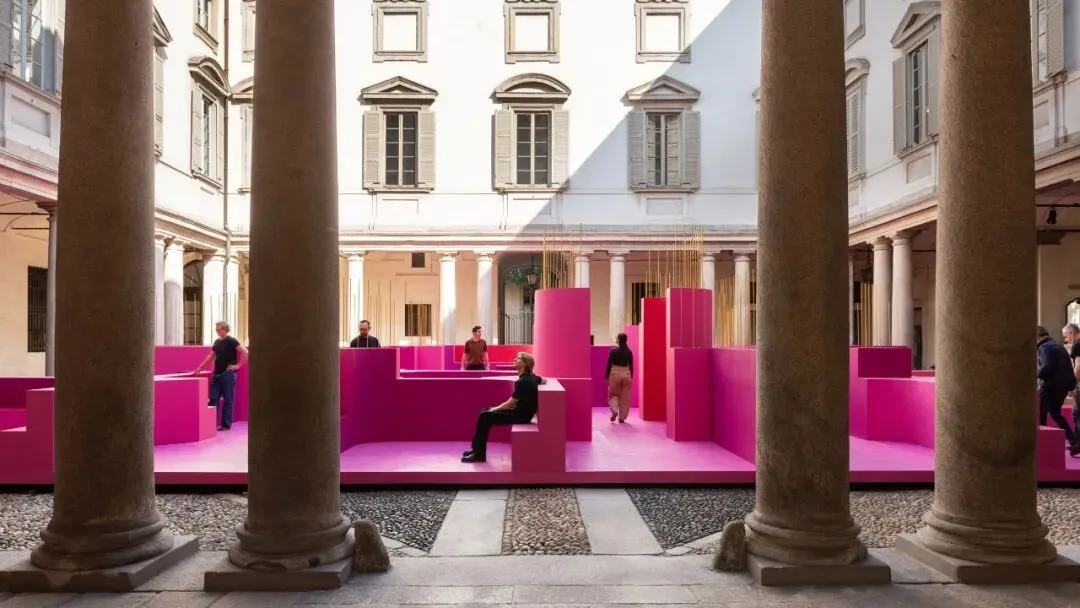 建筑师 Lina Ghotmeh 在米兰利塔宫(Palazzo Litta)的庭院中打造了名为“运动中的变形”(Metamorphosis in Motion)的迷宫。
