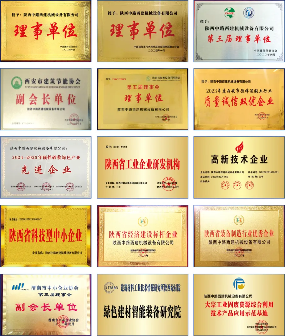 除了自身的技术创新,中路西建利废(陕西)技术研究公司还积极投身于行业的发展与进步。自公司成立以来,先后被推选为“渭南市中小企业协会”副会长、“西安市建筑节能协会”副会长、“陕西省资源综合利用协会”副会长、中国混凝土与水泥制品协会预拌混凝土分会理事、中国循环经济协会理事、“四川省装配式建筑产业协会”副会长、“中国建筑节能协会”会员单位等。同时,公司还荣获“陕西省高新技术企业”“陕西省经济建设标杆企业”“陕西省装备制造行业优秀企业”“科技型中小企业”等多项荣誉认定,充分彰显了中路西建在行业内的领先地位和卓越影响力。