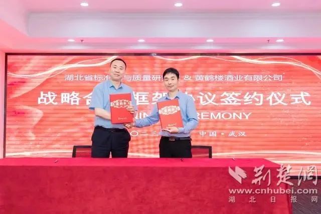 5月5日,湖北省标准化与质量研究院与黄鹤楼酒业有限公司在国家技术标准创新基地举行战略合作协议签订仪式,黄鹤楼酒业有限公司党委书记、董事长许鹏、湖北省标准化与质量研究院院长陈炎明、黄鹤楼酒业有限公司党委委员、技术质量中心总监李良、湖北省标准化与质量研究院高新所所长谢秋琪、湖北光谷标准创新公司总经理李志勇等人出席了此次签约仪式。