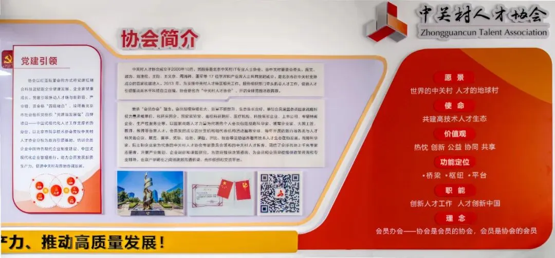 “世界的中关村,人才的地球村”。中关村作为我国创新发展的一面旗帜和全国第一个人才特区,中关村人才协会一直致力于促进高技术人才生态建设为己任。