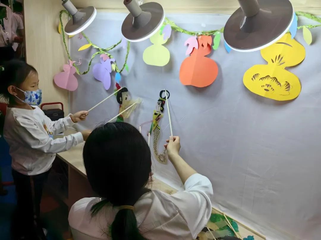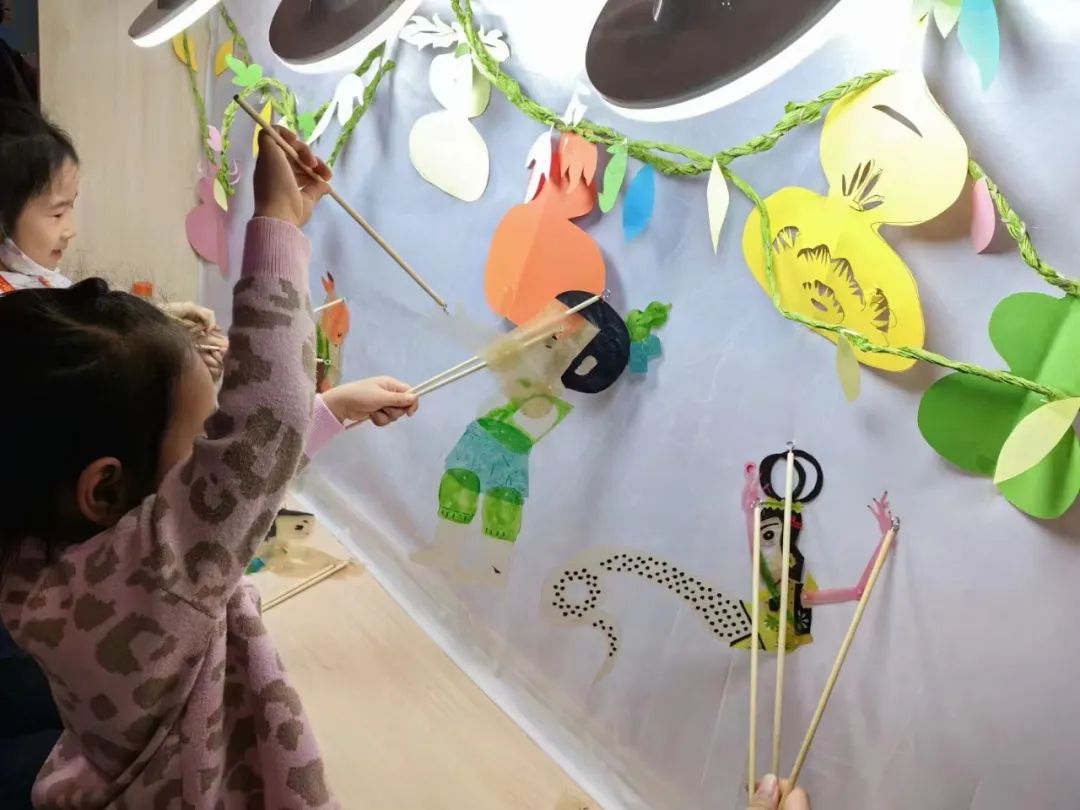 小朋友们发散想象力,舞动双手,沉浸在皮影戏表演的无穷乐趣中......