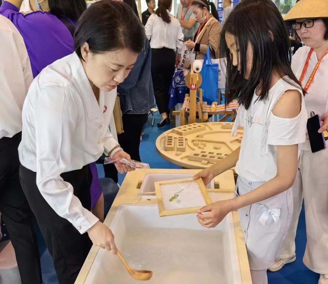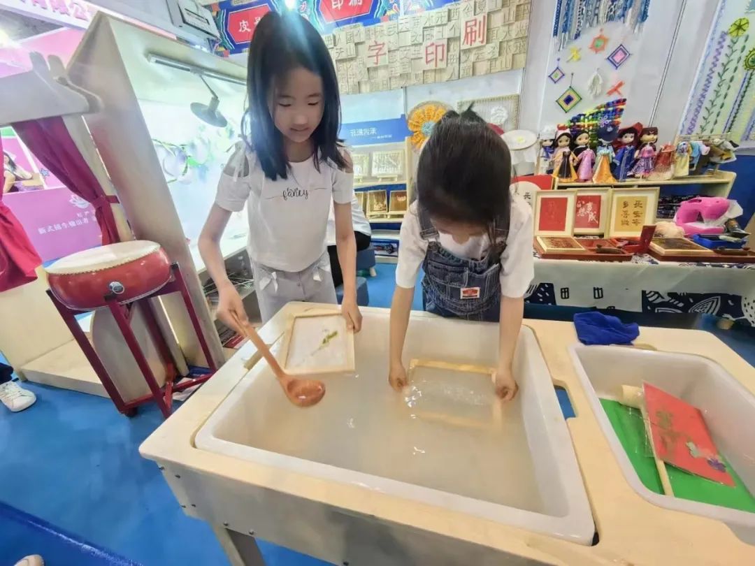来自全国各地的经销商、幼儿园园长、教师等幼教同仁们被科瑞兔丰富多样的产品所吸引,大家纷纷现场体验纺织、印刷、古法造纸、皮影等众多非遗游戏,感受非遗文化的魅力!