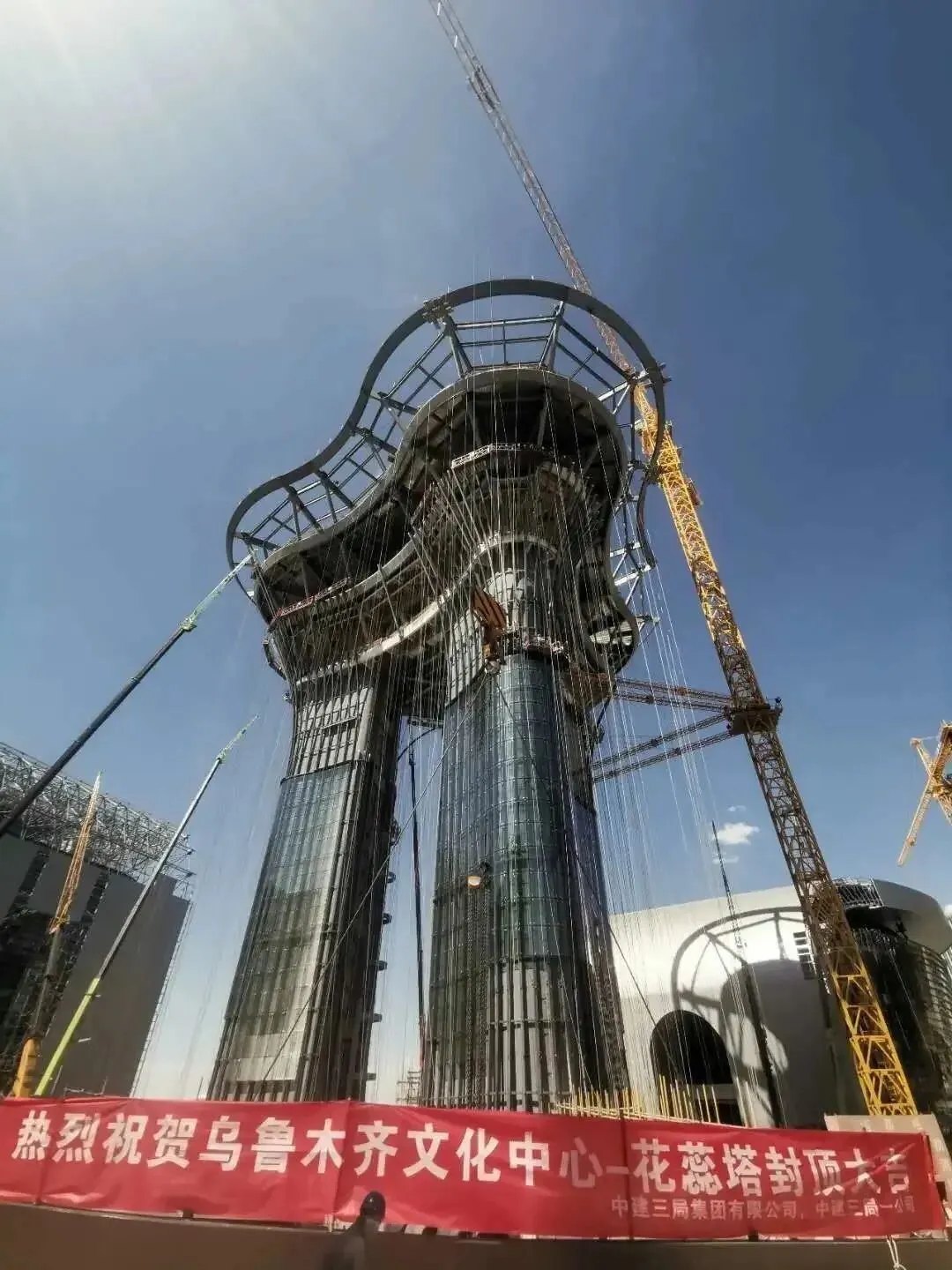 同时,根据6月2日最新工程进度表示,由中建三局一公司参建的参建的乌鲁木齐文化中心-花蕊文化塔(一心)项目主体钢结构顺利封顶!这表示,迎来六馆一心全面绽放的时日越来越近了!
