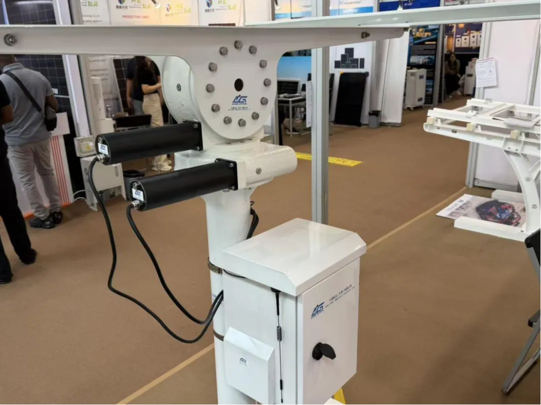 “我们这款智能AI光伏跟踪支架,搭载高精度AI智能控制系统和智能化运维系统,不仅发电效率大幅提升,后期人工运维成本也大幅降低。产品分为黑带钢加工成型与热镀锌工艺款,满足不同项目场景使用需求,结构稳定,可完美适配平地、山地、工商业屋顶、农光互补、渔光互补等各类复杂地形。”展会上,天津市瑞丰达金属制品有限公司业务员熟练地向客户介绍新产品的特性。