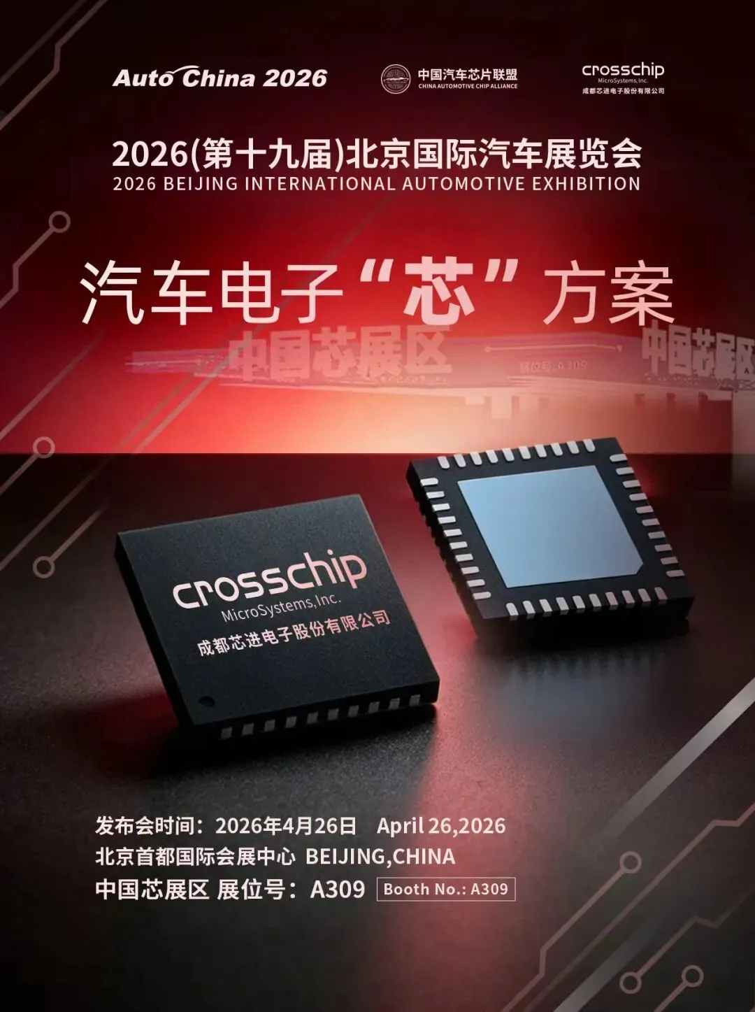 4月24日,2026(第十九届)北京国际汽车展览会即将盛大启幕。除备受瞩目的整车阵容外,被誉为汽车“数字大脑”的芯片领域,也将在零部件展区集中展现产业核心技术实力。