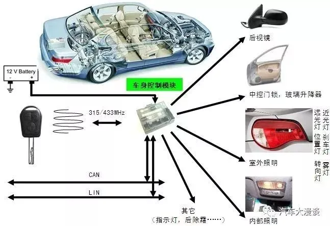 BCM(Body Control Module)车身控制模块,能够实现控制汽车车身用电器,比如整车灯具、雨刮、洗涤、门锁、电动窗、天窗、电动后视镜、遥控等。该系统还具有电源管理功能,高低电压保护,延时断电,系统休眠等功能。是汽车设计中不可或缺的重要组成部分。