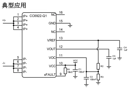 电路中电流检测用到霍尔电流传感器,CC6922-Q1是一种高性能电流传感器,产品符合 AEC-Q100 grade 1 标准,能有效测量直流或交流电流,具有高精度、优良的线性和温度稳定性,广泛应用于汽车电子、光伏、工业控制、新能源和通信设备,特别适用于汽车充电器,确保充电效率和安全。具备20A,30A,40A,50A,65A,75A,80A,100A多档量程可选,芯片内置导线电阻仅为0.3mΩ,具备高带宽,低温漂和强干扰能力。