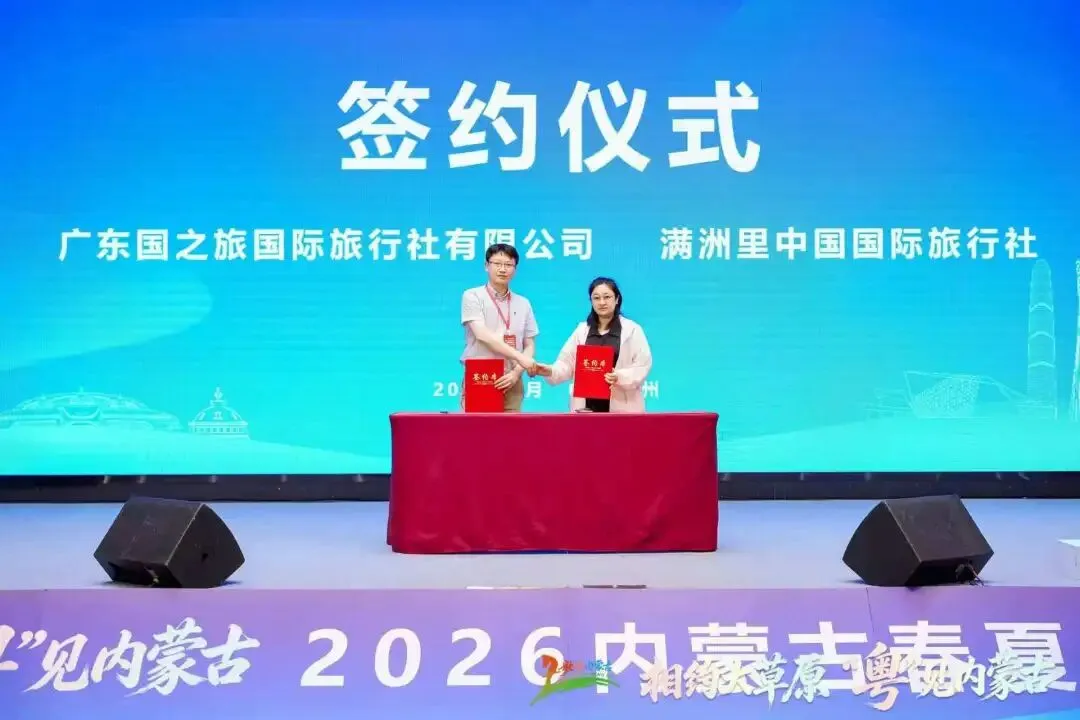 活动现场,广东省国之旅、广东省中旅分别与满洲里国旅、内蒙古文旅集团正式签署客源互送战略合作协议,为推动粤蒙两地文旅市场互通、客源双向输送夯实了合作根基。与会双方围绕文旅产品迭代创新、市场渠道纵深拓展、惠企政策落地实施、文旅服务提质升级等重点议题开展深度洽谈对接,达成多项务实性合作成果。多家广东重点旅行社明确表示,将把内蒙古草原特色文旅线路列为2026年春夏季核心推广产品,全力推动粤蒙“百万人互游”计划高效落地、稳步见效。