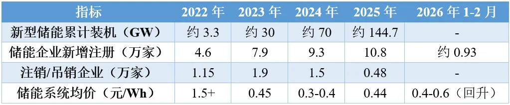 ▶2026年储能行业冰火两重天:头部企业订单爆满、价格回升,但中小企业在价格战和政策收紧下大面积出清,仅2025年就有5万家储能企业注销。