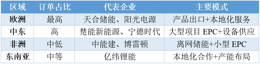 表5:中国储能企业出海订单区域分布(2026年1-2月)