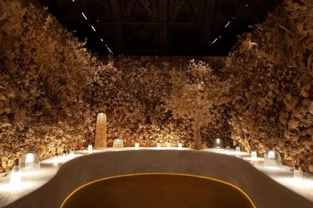 布雷拉(Brera)不是一个适合赶路的地方。这个米兰老街区在设计周期间集中了超过200家永久性展厅和300多个临时装置,几步路之间就能从一场古典宫殿展览穿越到一个当代品牌的沉浸式体验。今年,时尚大牌深度入场,但设计、工艺、材料的力量同样不减——两种语言在同一条街上平行流动,互不干扰,又彼此映照。布雷拉设计周还推出了“Fuorisalone Passport”通行证:一次注册,用二维码进入多个活动,省去每场重新报名的麻烦。从布雷拉美术宫(Pinacoteca di Brera)一楼回廊开始——萨拉·里恰尔迪(Sara Ricciardi)为美国运通(American Express)创作的“Serotonin——幸福的化学”(Serotonin – the chemistry of happiness),把“快乐荷尔蒙”翻译成了一个不断变化的空间。充气形态膨胀又收缩,光线和色彩以近乎不易察觉的方式波动,一条接近呼吸和心跳频率的声轨贯穿全程。你走过它,没有必须停下的点,只靠这些微小变化构成一段非常身体化的体验——更多是感受,而非观看。帕拉佐奇泰里奥(Palazzo Citterio)今年迎来了一个意想不到的客人:乌兹别克斯坦艺术与文化发展基金会带来的展览“当杏花盛开”(When Apricots Blossom),由美国建筑师库拉帕特·扬特拉萨斯特(Kulapat Yantrasast)策展。展览从咸海的消亡历史出发,展示了与当地工匠合作开发的物件——面包印章、陶瓷、纺织品,每一件都在传统技艺和当代设计语言之间寻找平衡。花园里搭建了一座轻盈的游牧毡房(Yurta)现代诠释版本,全周开放工作坊和对谈活动。在博尔戈努奥沃街25号的兰德里亚尼宫(Palazzo Landriani),迪奥家居(Dior Maison)与法国设计师诺埃·迪绍弗-劳伦斯(Noé Duchaufour-Lawrance)合作,呈现新系列便携式台灯“Corolle”。这款灯的名字取自迪奥“新风貌”(New Look)的标志性廓形——那条宽大蓬松的裙摆。灯罩以穆拉诺玻璃工匠口吹传统工艺制作,模仿织物的褶皱和垂坠感,形态柔和轻盈。另一组作品则以日本毛竹(Madake)纤维编织而成,纹理参考了藤条图案,投影在墙上形成一整片光影图案。设计师本人这样描述:“光的投影和材质本身同等重要——那些反射让光本身变成了物质。”展览的装置背景灵感来自迪奥先生童年时代的避暑别墅花园,整个空间弥漫着某种安静的私人回忆感。今年布雷拉最引人注目的装置之一,是古驰(Gucci)在圣西姆普利恰诺修道院(Chiostri di San Simpliciano)呈现的“Gucci Memoria”,由创意总监德姆纳(Demna)策划。展览核心是十二幅大型挂毯,串联起古驰从古乔·古驰(Guccio Gucci)创立品牌至今的百年叙事,每一幅都是一个时代切面。修道院花园以经典的Flora图案为灵感重新布置,绿意与印花交织;最出人意料的是角落里特别设计的自动贩卖机——这个细节既有趣又带点当代讽刺意味,把博物馆式的严肃氛围戳出了一个缺口。在圣安杰洛修道院(Chiostro Sant'Angelo),意大利家具品牌Flexform用“物件的私密生活”(The Private Lives of Objects)呈现户外家具系列。回廊、庭院和自然光构建出场景,沙发和座椅与既有建筑对话——阴影区和开放口之间,修道院本身成了项目的一部分,而非单纯背景。展览继续延伸至莫斯卡瓦街(via della Moscova)旗舰店的室内部分,安东尼奥·奇特里奥(Antonio Citterio)、帕特里克·诺尔盖(Patrick Norguet)、福武史(Fumie Shibata)、塞巴斯蒂安·赫克纳(Sebastian Herkner)和莫妮卡·阿玛尼(Monica Armani)等设计师的签名作品集中亮相。在卡萨塔奇尼(Casa Tacchini),费伊·图古德(Faye Toogood)的“材料选集”(Material Anthology)从材料出发,而非物件——她深入公司档案和工坊,将边角料、样品和原材料转化为一组穿行于展厅各室的雕塑。大理石纹理、多节木材、金属与再加工表面构成一间间不同氛围,形状常常不变,但感知完全改变,因为决定这一切的是材料。展厅里还出现了图古德为塔奇尼设计的“Butter”座椅系统的最新演化版本,与这片材料风景直接对话。圣特雷莎媒体图书馆(Mediateca Santa Teresa)被“追逐太阳”(Chasing the Sun)改造成一个围绕光线、色彩和欢聚的沉浸空间。装置由英裔尼日利亚艺术家尹卡·伊洛里(Yinka Ilori)为凯歌香槟(Veuve Clicquot)设计——他的视觉语言辨识度极高,图案、符号和明艳色彩全部呼应太阳与能量。“追逐太阳”是一首关于温暖的凝聚、光的转化、日常相遇中诞生的快乐的颂歌。旁边还设有Clicquat Café和主题精品店。巴卡拉(Baccarat)带着“水晶地宫”(Crystal Crypt)重返设计周。设计师埃玛纽埃尔·卢恰尼(Emmanuelle Luciani)把空间变成了一座“银河大教堂”——“我把工坊想象成一个时间气泡,一座由跳舞的工匠居住的大教堂飞船。水晶地宫由此诞生,混合了运动、电影、舞台设计和声音:一个替代时间的结晶。”巴卡拉CEO劳伦斯·尼古拉(Laurence Nicolas)补充道:“米兰是我们的遗产与新的表达形式对话的地方。”品牌还展示了与贝桑·劳拉·伍德(Bethan Laura Wood)合作的新作“Mille Fleurs”——对经典Zénith吊灯的模块化、彩色重新诠释。在索尔费里诺街11号三楼的一间公寓里,丹麦品牌卡尔·汉森(Carl Hansen & Søn)打造了布雷拉最私密的展览之一。“平衡的原则——韦格纳的视野”(Balanced Principles – Visions of Wegner)将设计师汉斯·韦格纳(Hans Wegner)的作品置于真实居住空间中——有人住的房间、正在使用的家具,经典款和新版交替排列,让韦格纳的工作回到日常维度,更接近生活而非展览。爱马仕(Hermès)回到拉佩洛塔(La Pelot