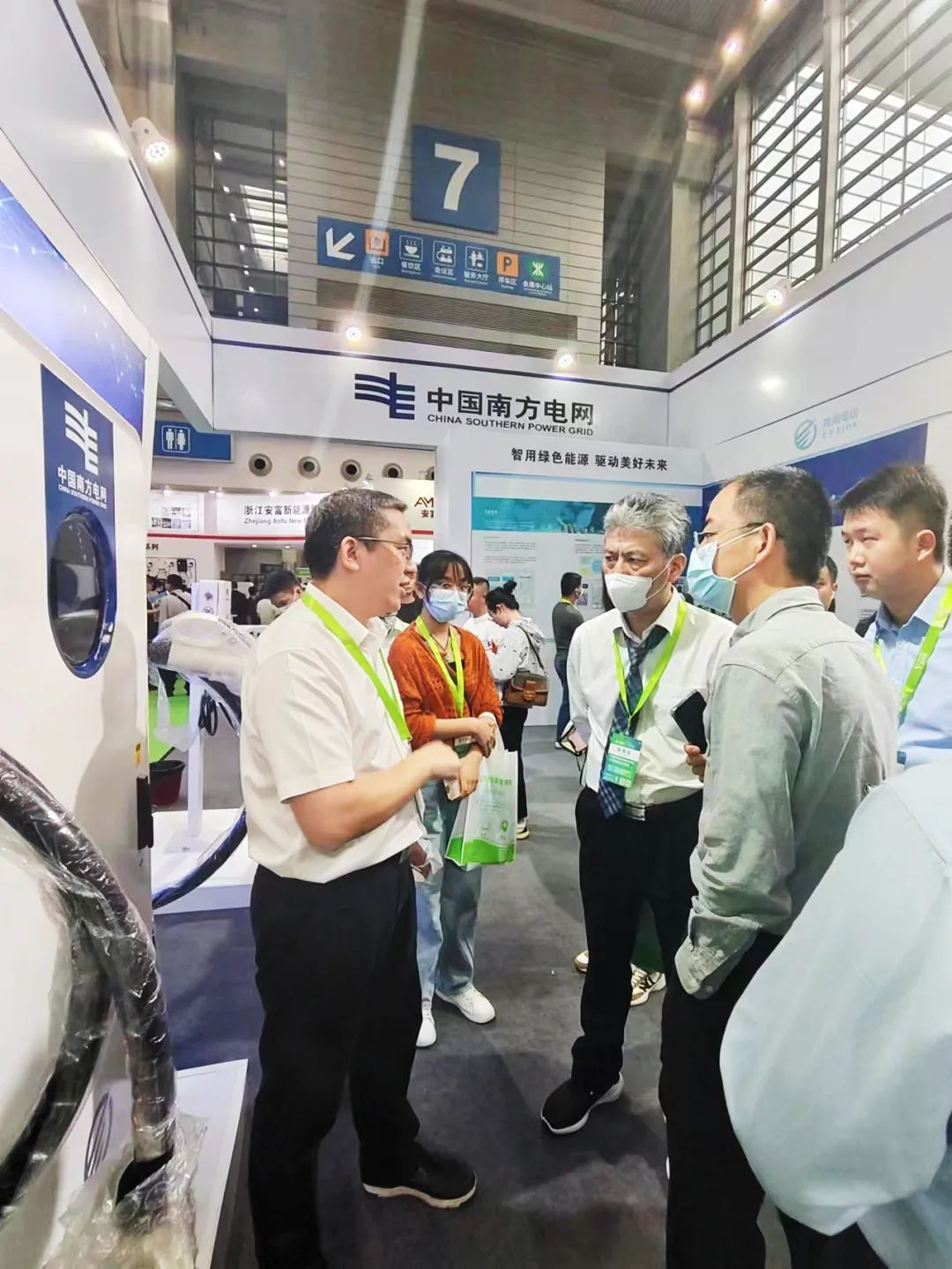 期间,南网电动公司展位吸引了众多专业客户前来参观,咨询合作源源不断、人气旺盛。此次展会公司带来了第四代直流快充和交流慢充等相关拳头产品,让客户近距离接触,直观了解公司对南方电网五省区、粤港澳大湾区充电设施未来布局、公司充电平台服务生态、专利产品详细功能参数等,不少客户对公司产品和服务表示称赞和肯定。