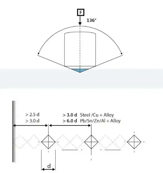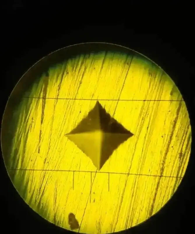 采用正四棱锥金刚石压头(顶角136°),测量压痕对角线长度计算硬度(如HV 300),适用范围广、精度高,适用于各类材料及精密零件检测。