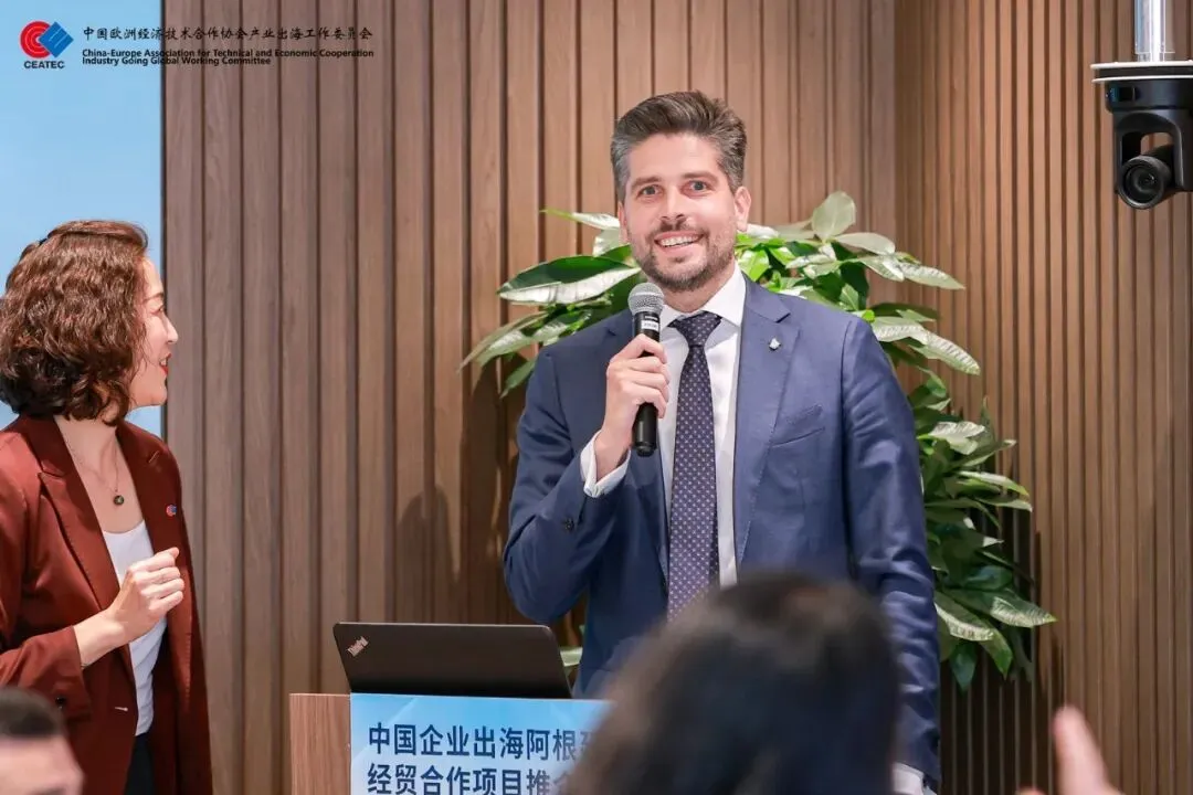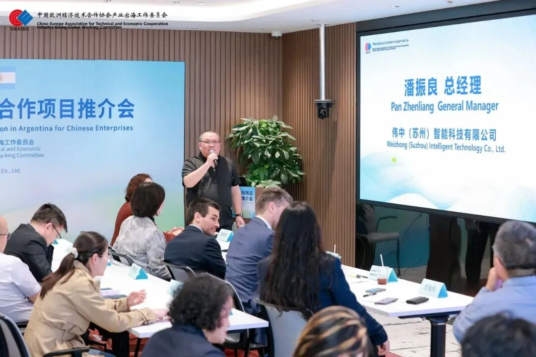 4月23日,由中欧协会产业出海分会举办的中国企业出海阿根廷经贸合作项目推介会,在京顺利召开。伟中智能作为中欧协会战略合作单位,总经理潘振良受邀出席,并与阿根廷共和国大使馆商务参赞吉列莫・西穆诺维奇先生及阿根廷共和国驻华大使馆商务秘书李麒先生开展一对一会谈。