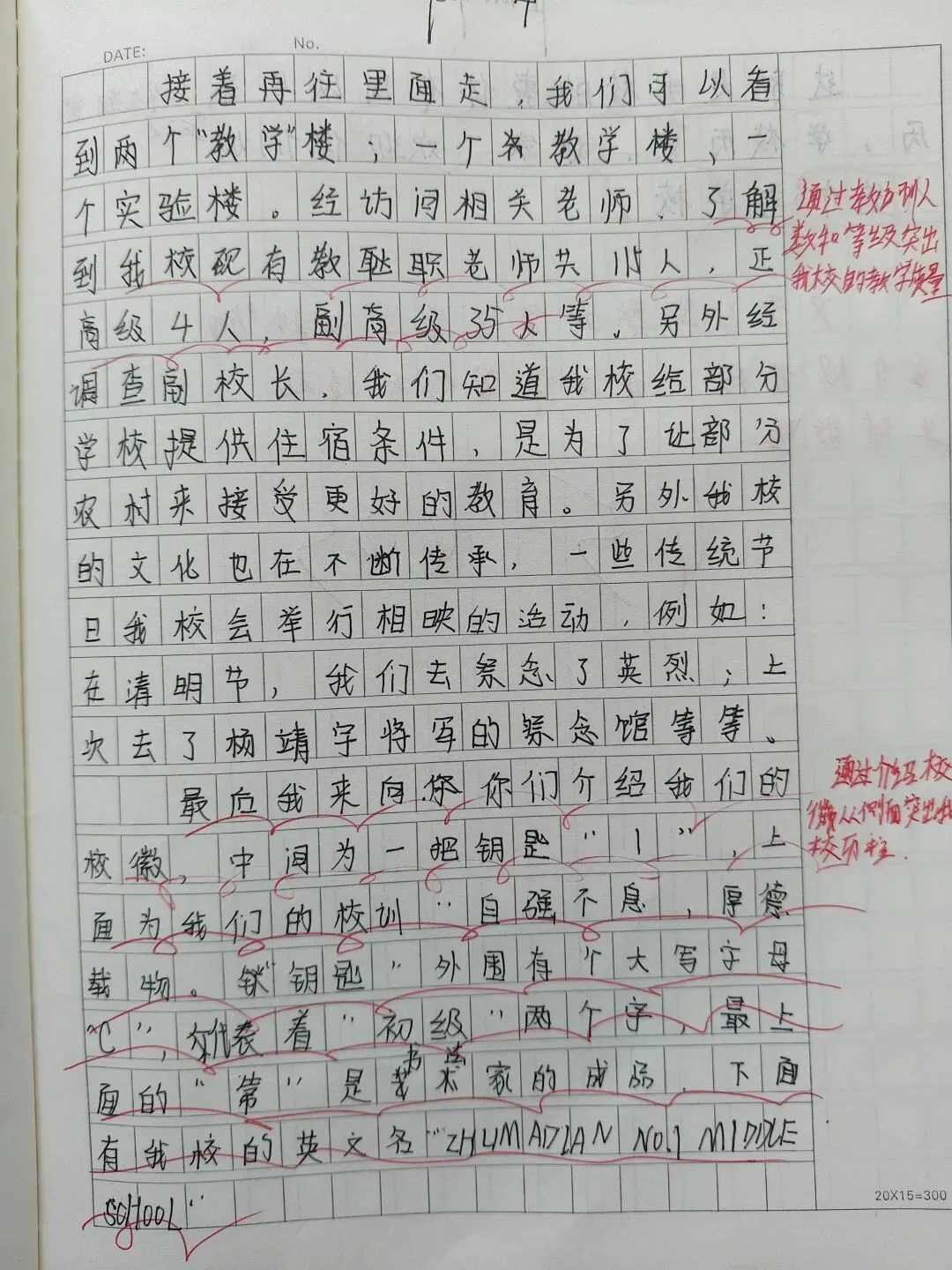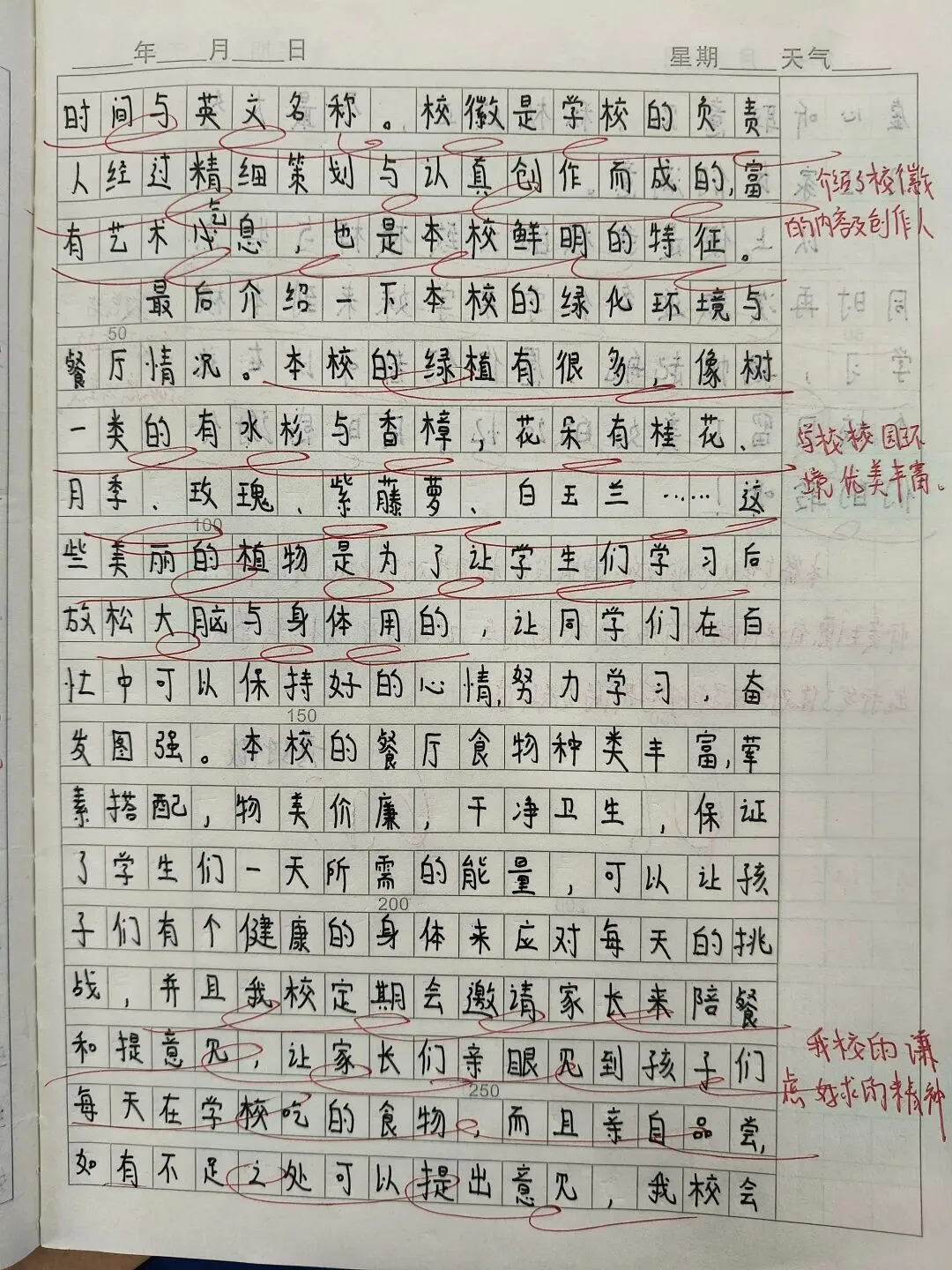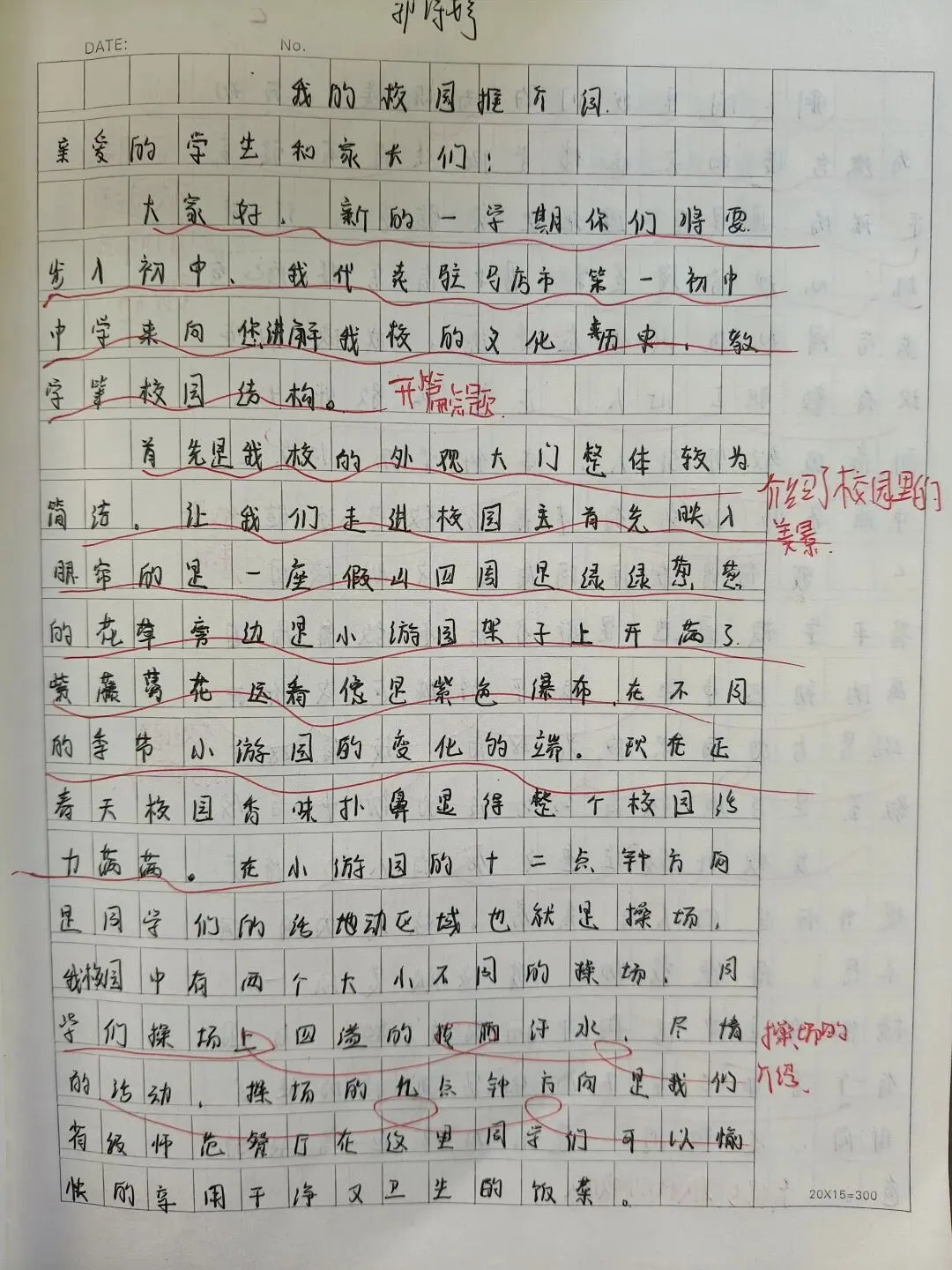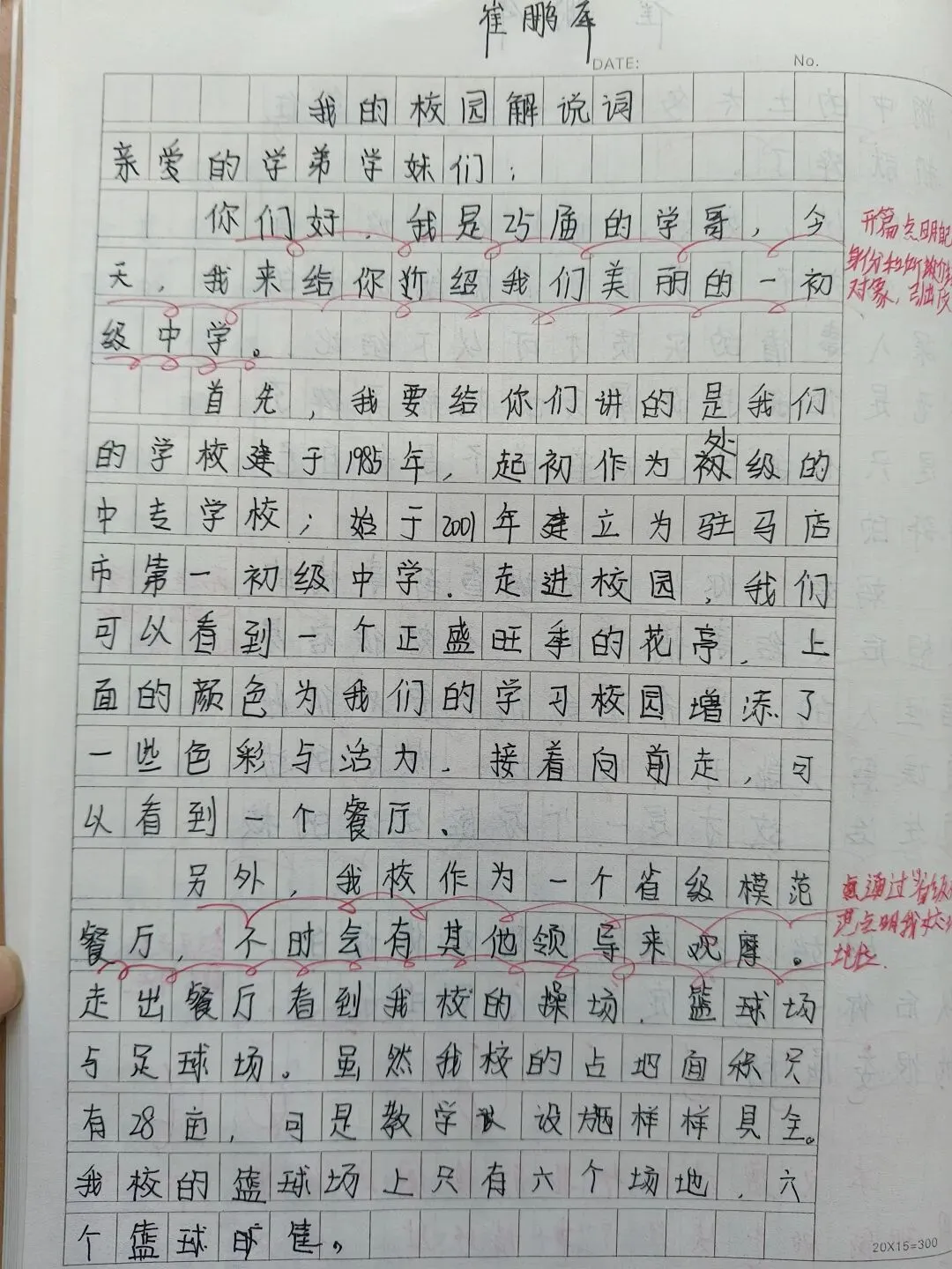 《我的校园》推介会作文,经过班级策划,分组采访,整理材料,班级小组成果展示,到书写《我的校园》解说词,历时一周,学生写出的解说词内容详实,语言优美,思路清晰,结构完整,可以说是一次比较成功的写作。