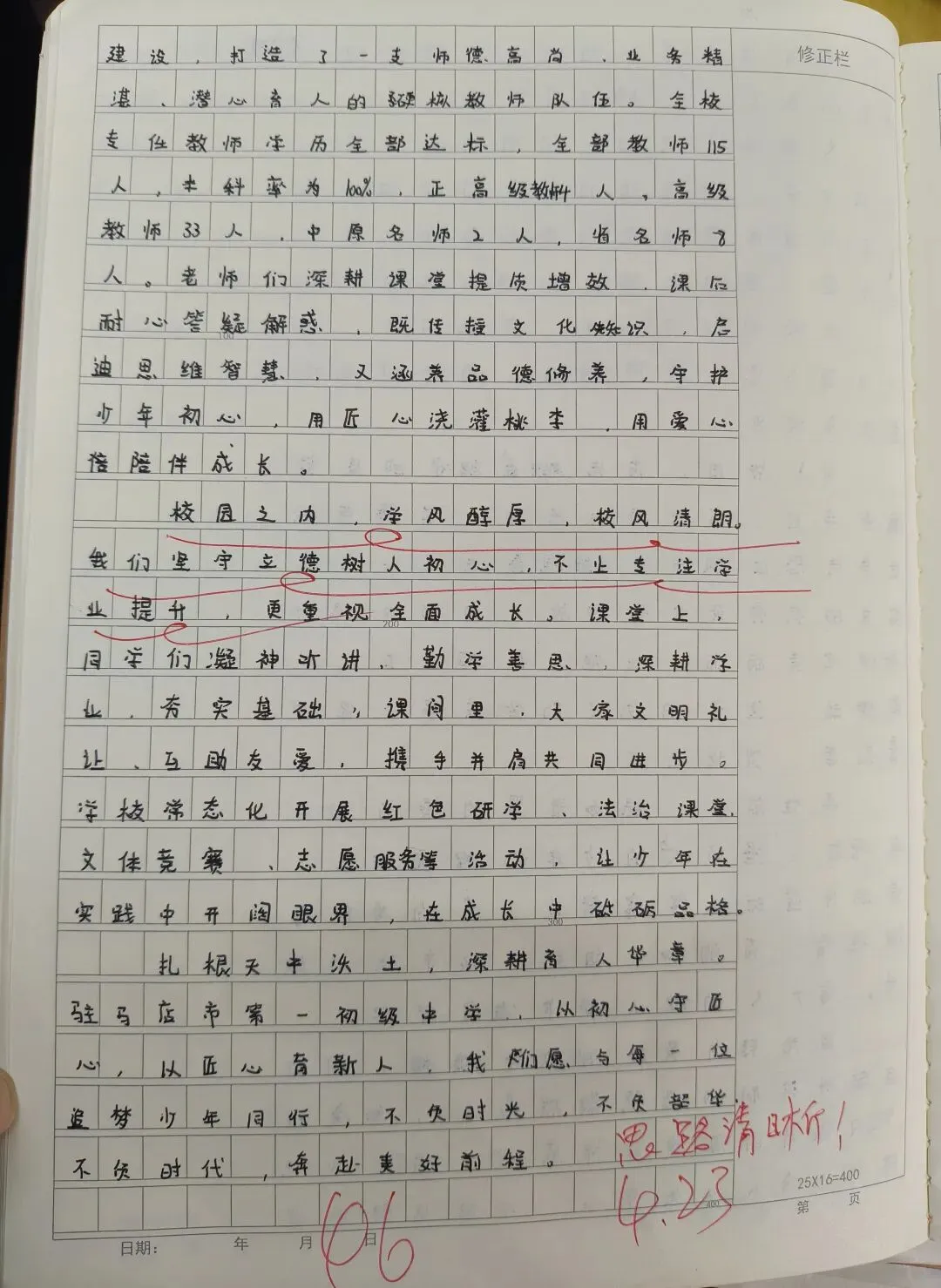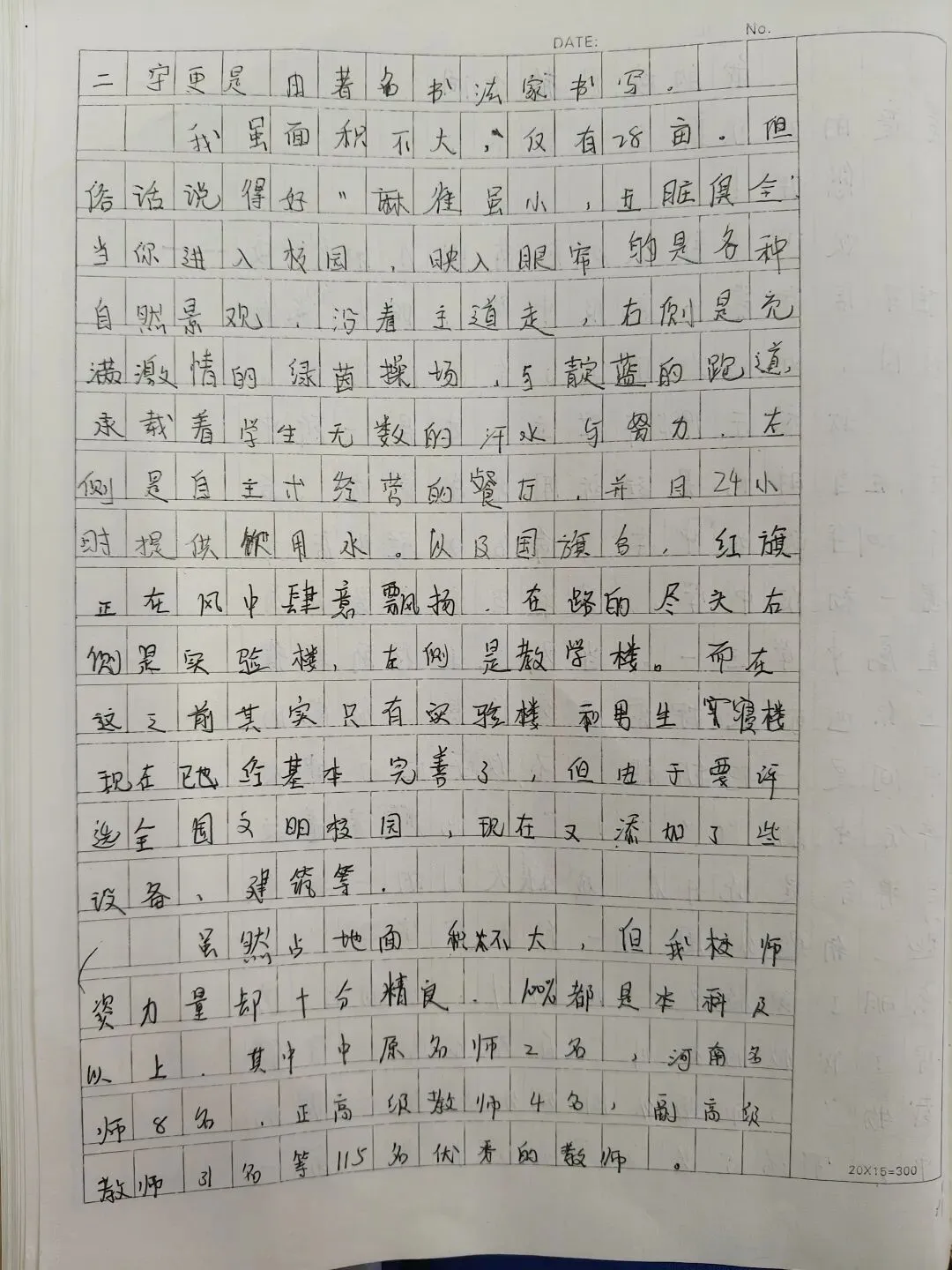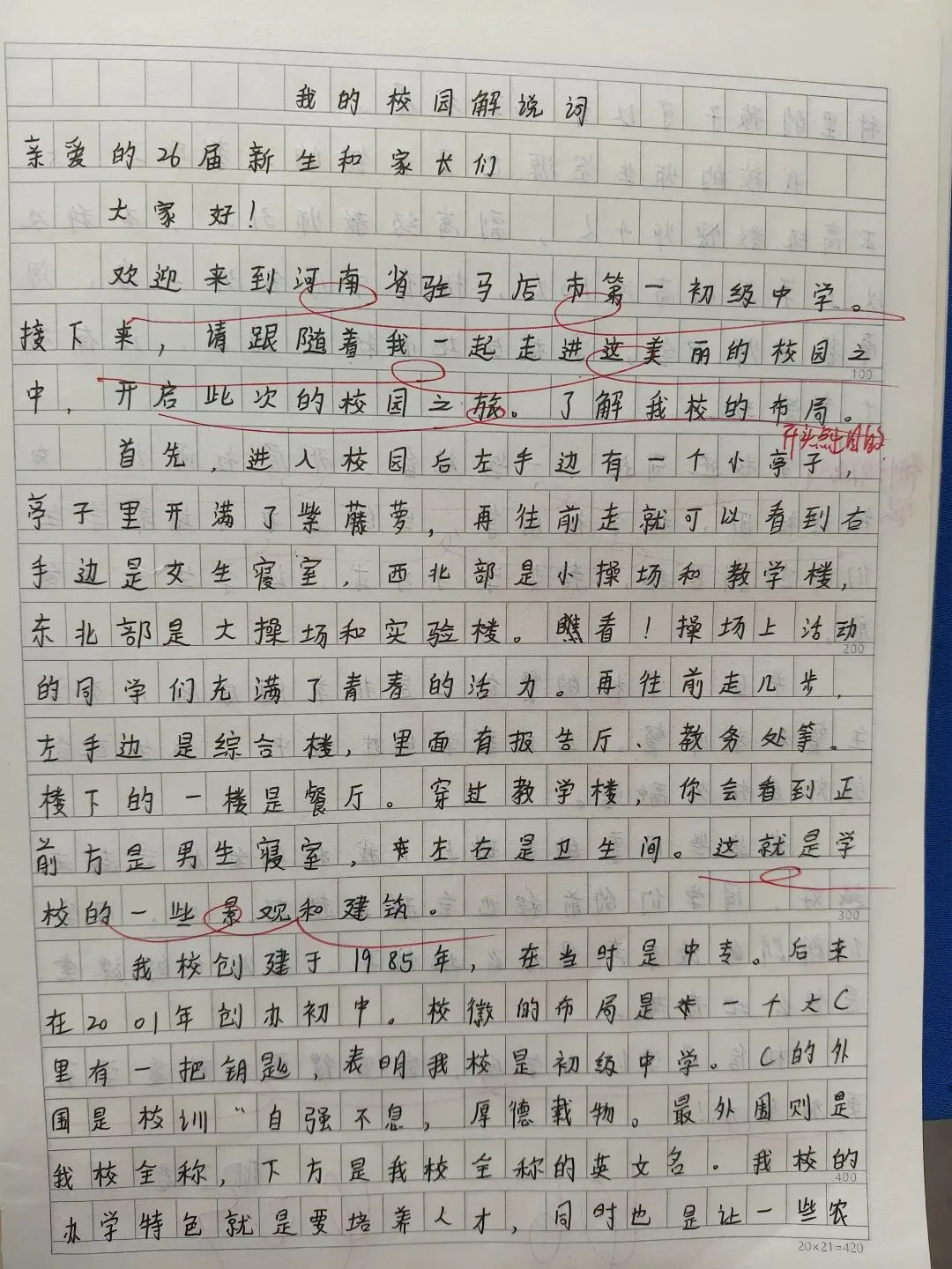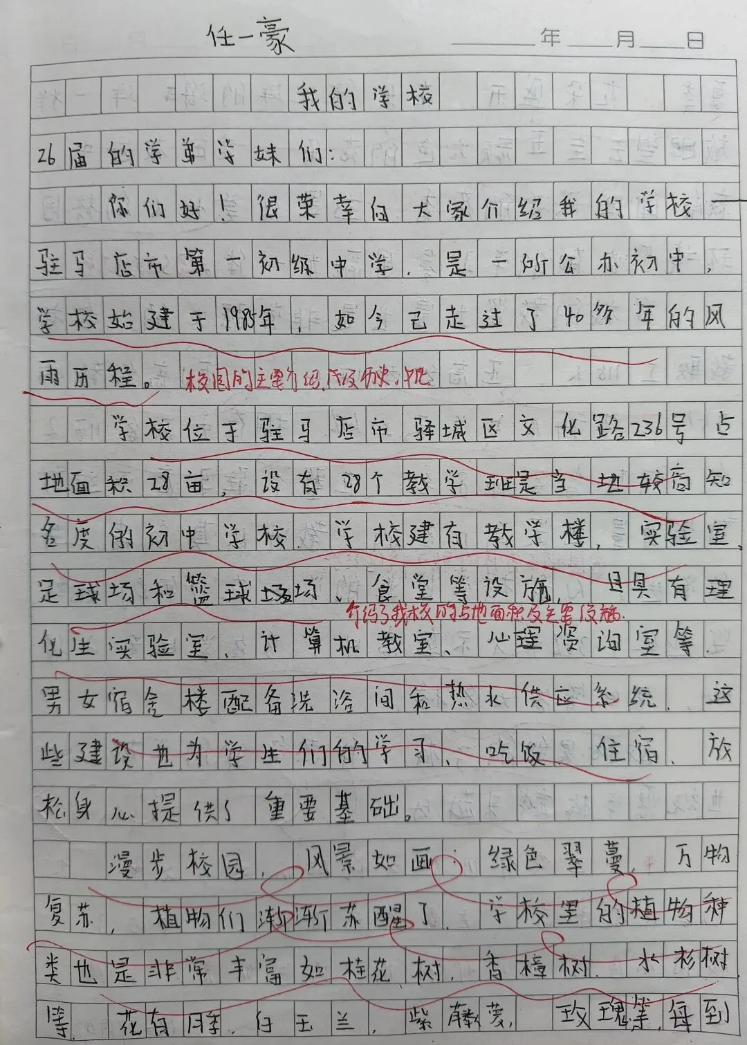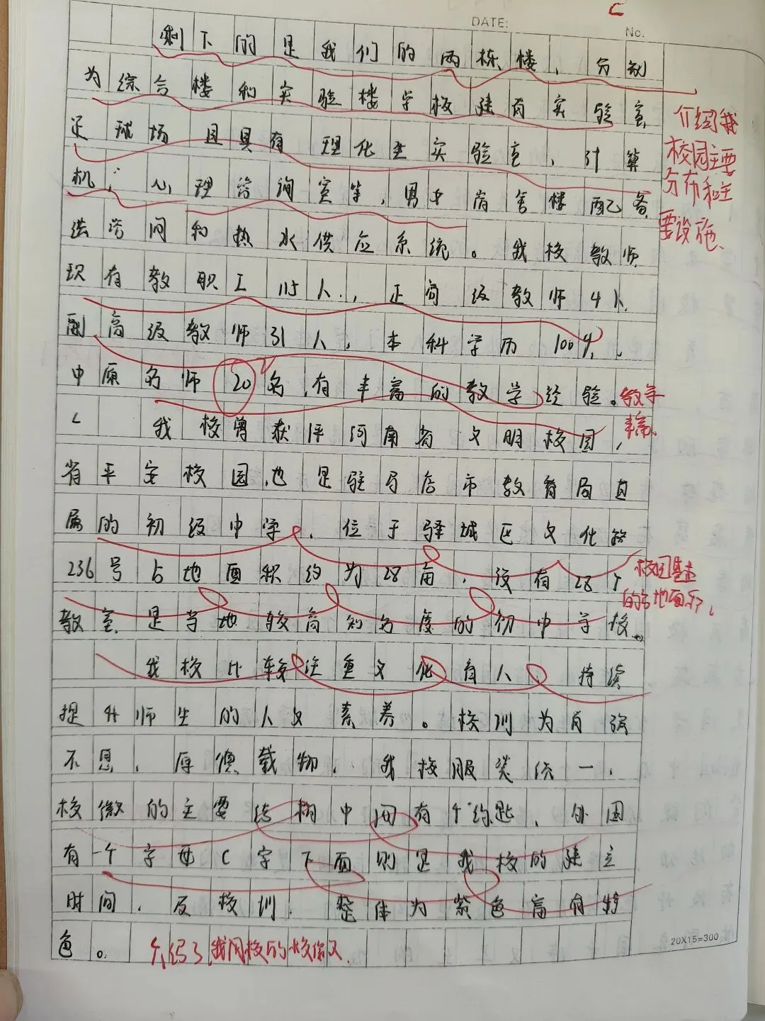 《我的校园》推介会作文,经过班级策划,分组采访,整理材料,班级小组成果展示,到书写《我的校园》解说词,历时一周,学生写出的解说词内容详实,语言优美,思路清晰,结构完整,可以说是一次比较成功的写作。