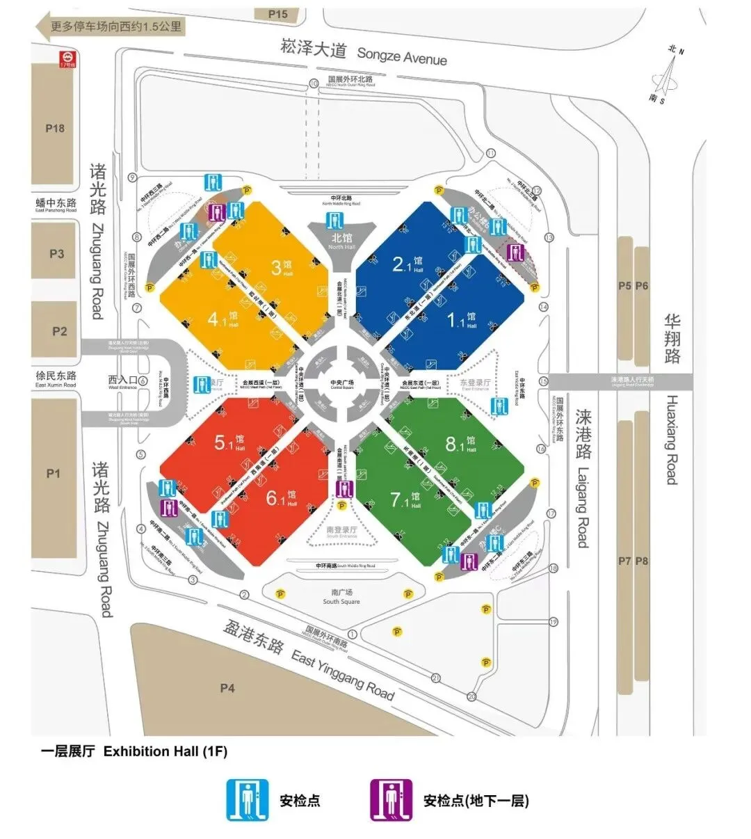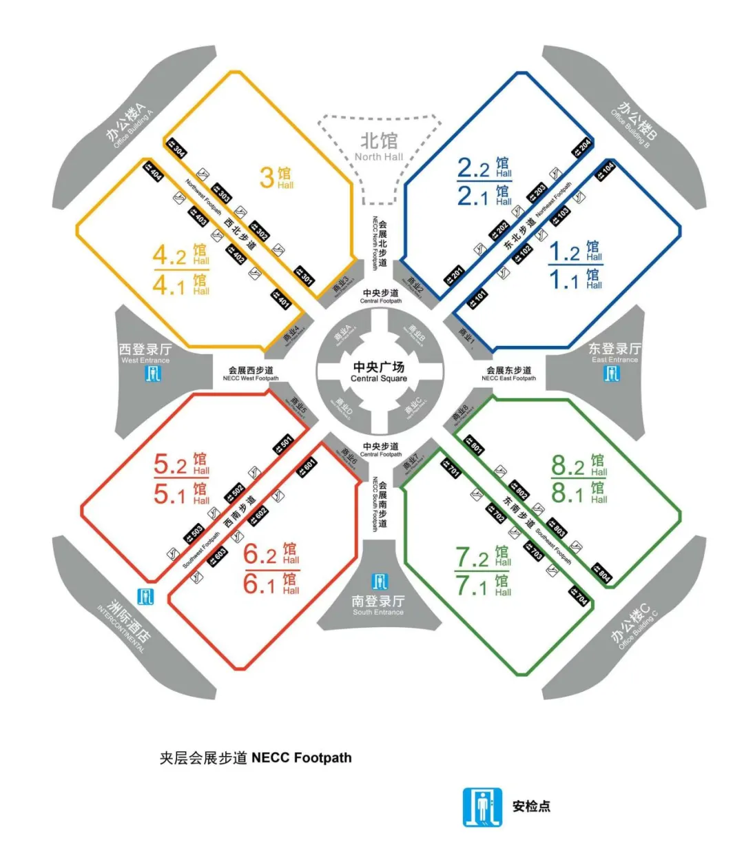 同时,会展夹层步道(8米层)也提供安检口进入
