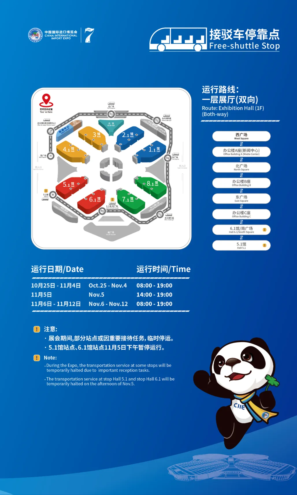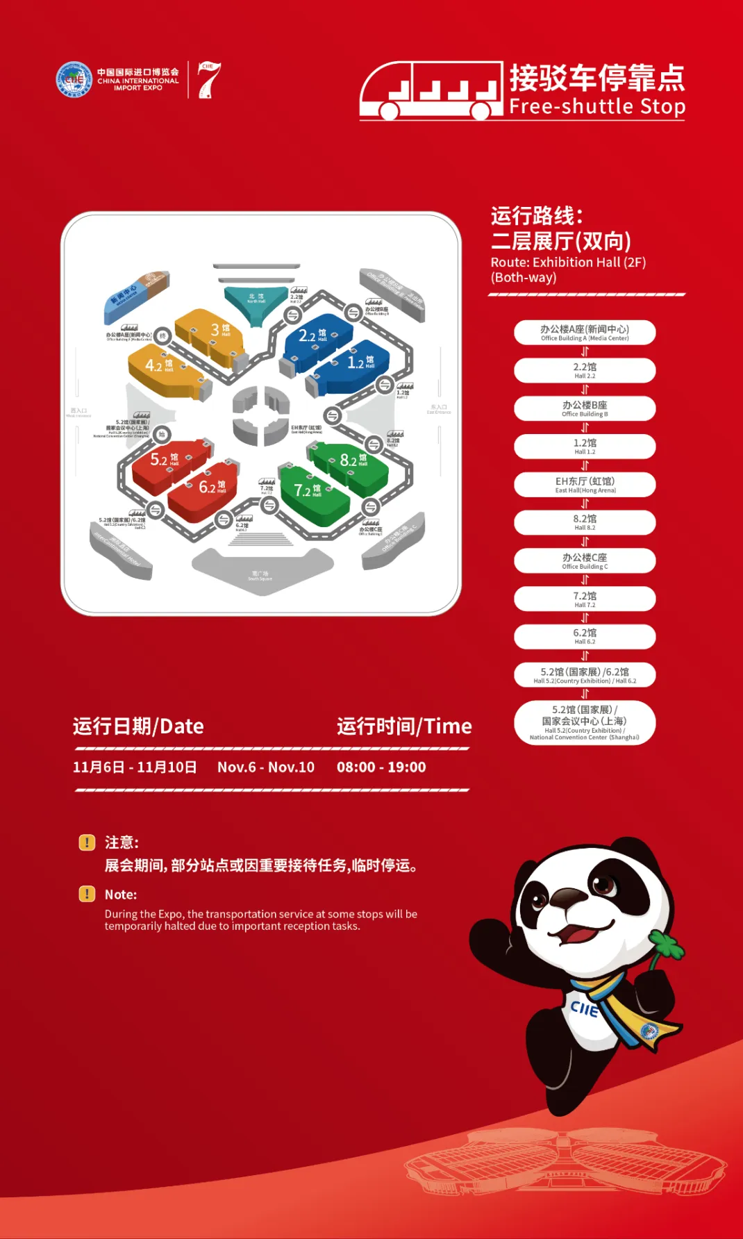 为了能快速到达想去的展厅,此次设置了两条馆内接驳车路线,下面请看: