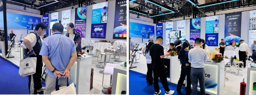 图:Fluence展会现场展示界面及现场交流实况Fluence携MABR污水处理技术与Nirobox海水淡化产品精彩亮相展会。在展位现场,Fluence团队为到访的潜在客户详细介绍了工艺原理、产品优势及应用场景,并围绕合作方向展开深入探讨,致力于实现互利共赢。