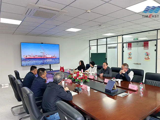 During the exchange, the visiting guests engaged in discussions with TIMEAST representatives, gaining a detailed understanding of the company's operational management and technological R&D. The Chairman of TIMEAST Group and the General Manager of TIANJIN TIMEAST highlighted the company's strategic plans in the marine engineering sector, the development of proprietary intellectual property, and the successful application of its core patented technologies in multiple offshore projects, which received high recognition from the delegation.